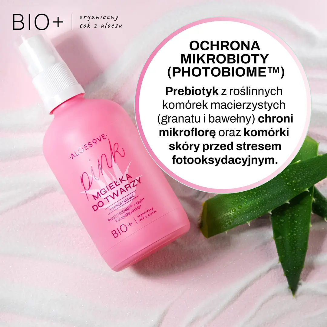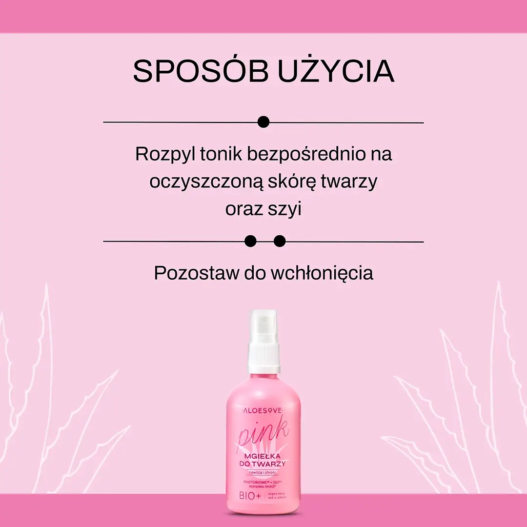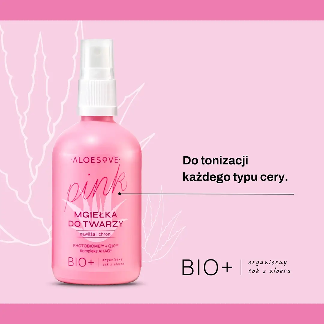 Tonik-mgiełka ALOESOVE PINK to produkt do codziennej pielęgnacji każdego typu cery. Tonizuje skórę, zapewniając intensywne nawilżenie i ochronę. Dzięki kompleksowi AHAG z ekstraktów aloesu, miłorzębu japońskiego, hibiskusa i oleju z nasion amarantusa, skutecznie łagodzi podrażnienia i redukuje zaczerwienienia.