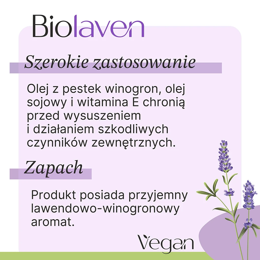 Skład INCI | Aqua, Benzyl Alcohol, Cocamidopropyl Betaine, Coco-Glucoside, Dehydroacetic Acid, Glycerin, Lactic Acid, Lavandula Angustifolia Oil, Limonene, Linalool, Panthenol, Parfum, Propanediol, Sodium Hyaluronate, Urea |