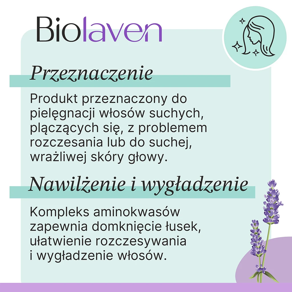 Masz dość suchych, plączących się włosów i nieudanych prób rozczesania? A może twoja skóra głowy jest wrażliwa i potrzebuje dodatkowej ochrony? Poznaj niezwykłą odżywkę-mgiełkę BIOLAVEN. Jej unikalna formuła z kompleksem aminokwasów doskonale domyka łuski włosów, zapewniając im gładkość i zdrowy wygląd.