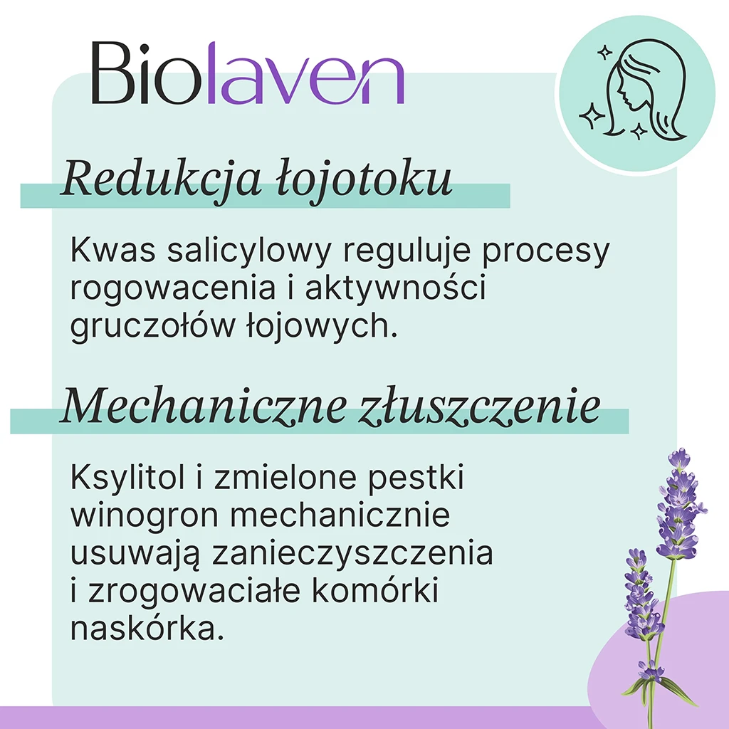 Zapomnij o nadmiernym przetłuszczaniu się skóry głowy! Dzięki obecności kwasu salicylowego, peeling reguluje procesy rogowacenia i normuje pracę gruczołów łojowych.