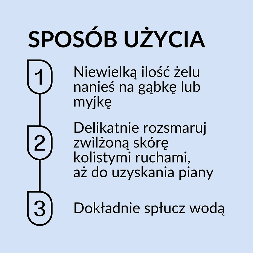 Wyjątkowo łagodne, a jednocześnie niezwykle skuteczne środki myjące nie powodują podrażnień nawet najbardziej wrażliwej skóry. Żel przywraca harmonię skórze podczas każdego mycia.