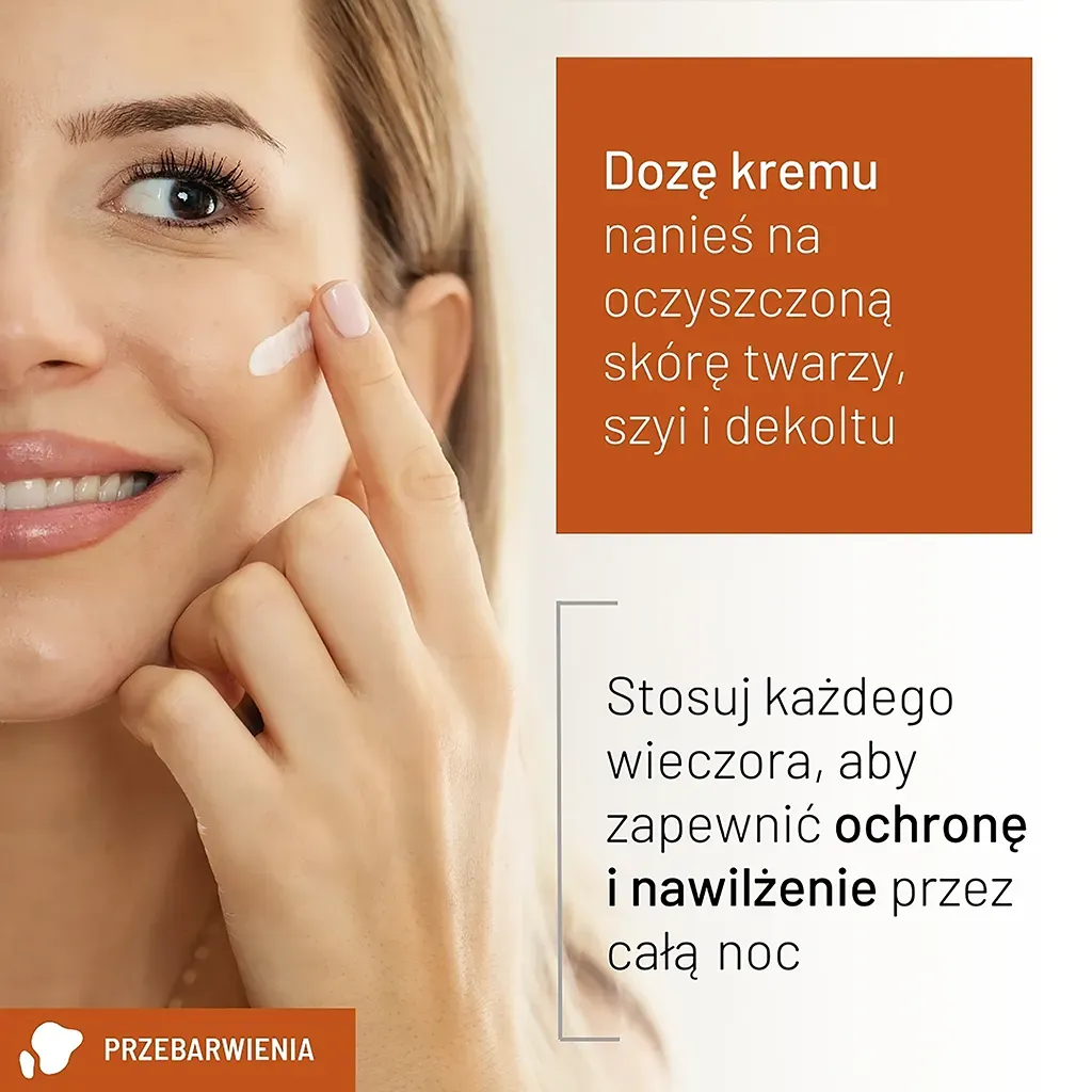 Ten innowacyjny krem powstał specjalnie dla osób zmagających się z przebarwieniami posłonecznymi, pozapalnymi, potrądzikowymi, zmianami barwnikowymi oraz nierównym kolorytem cery. Idealnie sprawdza się w wieczornej pielęgnacji twarzy, gwarantując efekt promiennej, gładkiej skóry o poranku.
