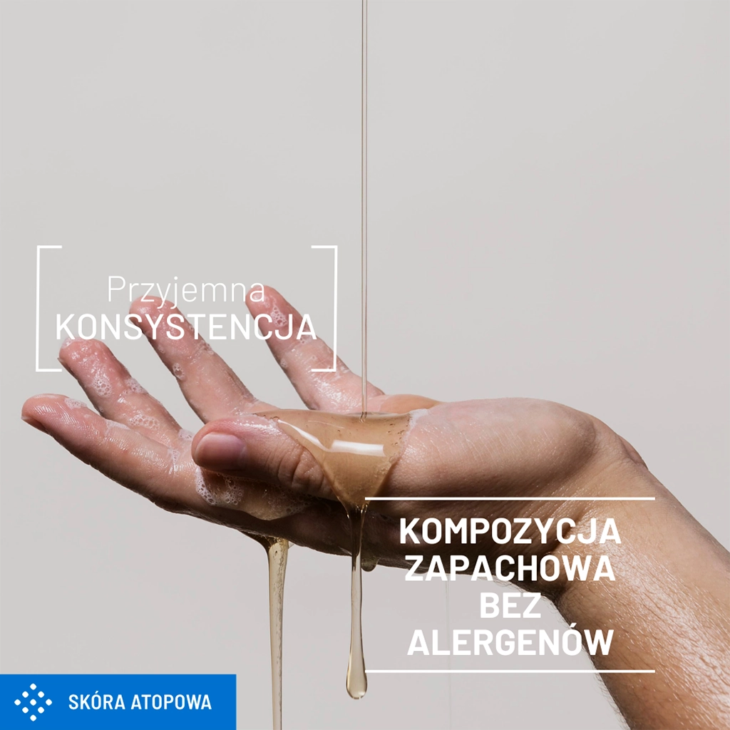 Olejek tworzy przyjemną, jedwabistą konsystencję, która delikatnie rozprowadza się po skórze, skutecznie usuwając zanieczyszczenia, a jednocześnie pozostawiając ją wygładzoną i komfortową. Produkt jest wzbogacony o kompozycję zapachową bez alergenów, dzięki czemu jest bezpieczny dla osób ze skórą nadreaktywną.