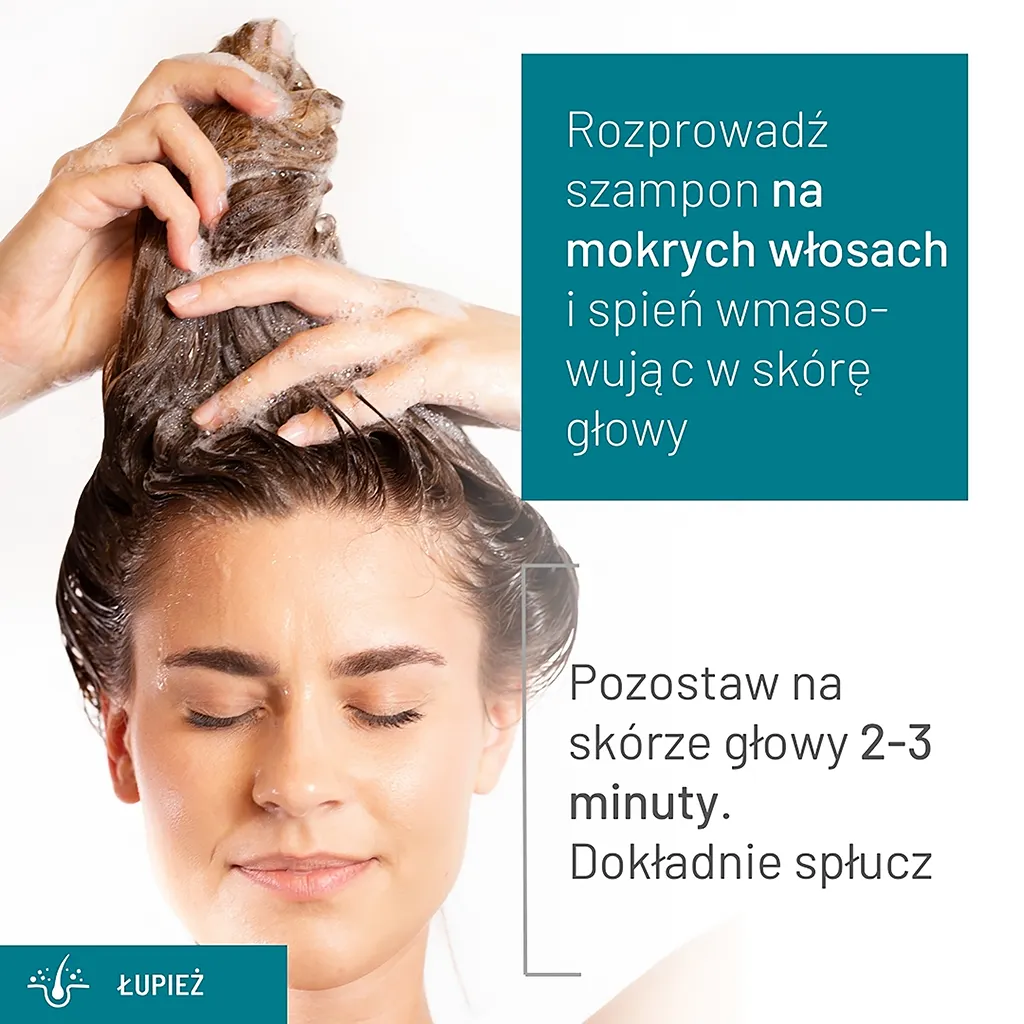 Sposób użycia | Rozprowadź szampon na mokrych włosach i spień wmasowując w skórę głowy. Pozostaw na skórze głowy 2-3 minuty. Dokładnie spłucz. W razie potrzeby można czynność powtórzyć. |