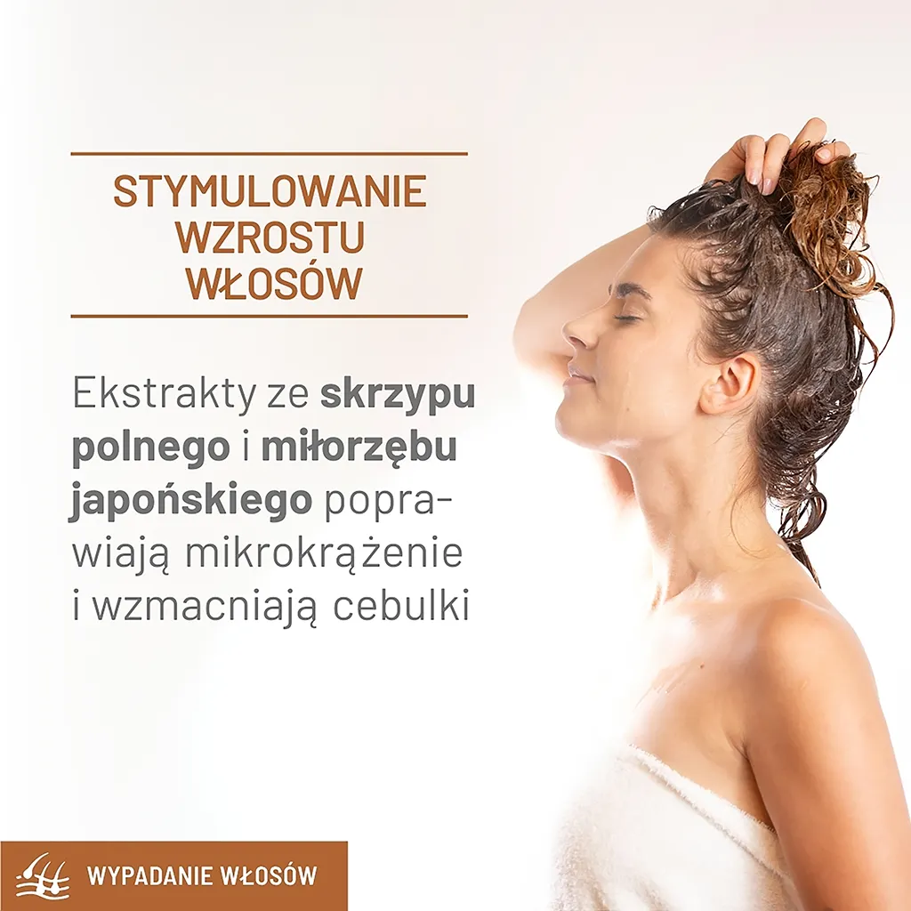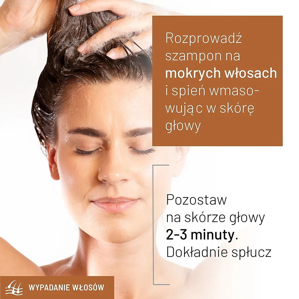 Specjalistyczny szampon dla osób zmagających się z problemem wypadania włosów, przedwczesnym łysieniem. Delikatne środki myjące usuwają zanieczyszczenia i resztki produktów do stylizacji, co zapewnia lepsze warunki do wzrostu włosów. Biotyna i proteiny redukują wypadanie włosów, utrzymują nawilżenie skóry głowy i włosów.