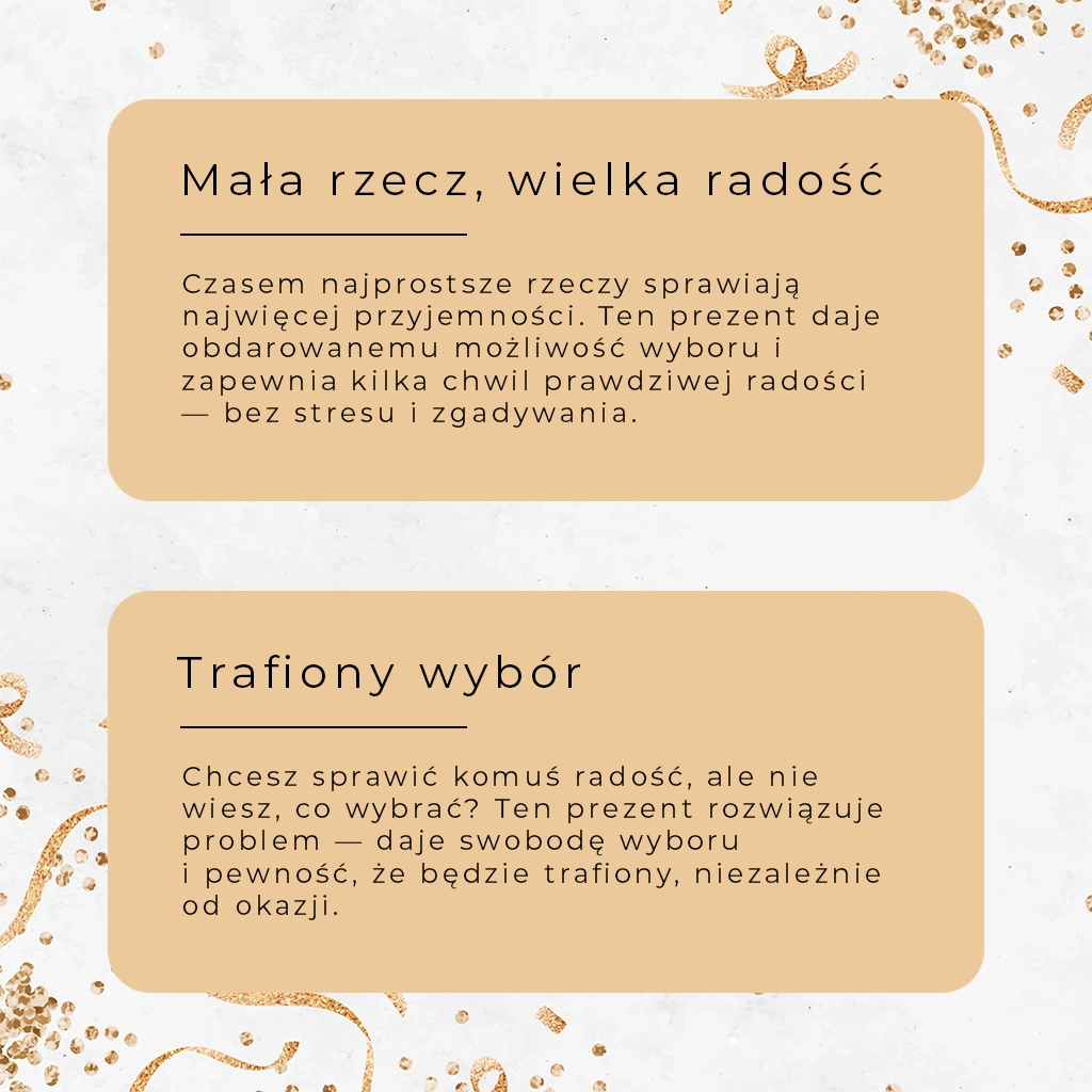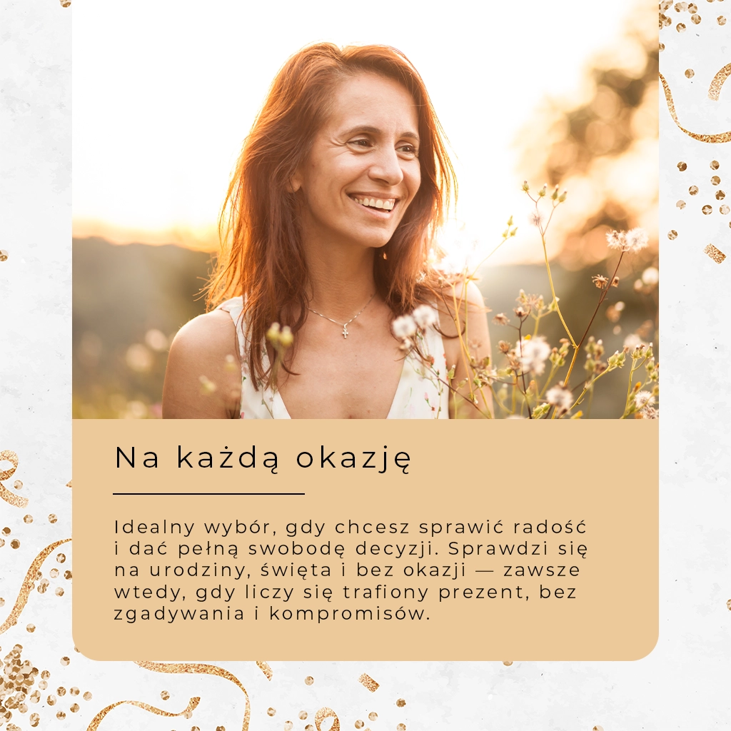 Jeśli nie masz pewności, co sprawi radość bliskiej osobie, podaruj jej możliwość wyboru – niech sięgnie po kosmetyki, które lubi, których aktualnie potrzebuje lub które od dawna planuje przetestować.
