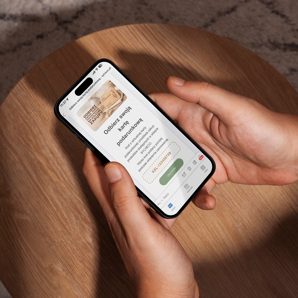 Wirtualna karta podarunkowa SYLVECO to szybki i praktyczny sposób na udany prezent – także wtedy, gdy liczy się czas. Karta wysyłana jest e-mailem w ciągu 24 godzin od złożenia zamówienia, dzięki czemu doskonale sprawdzi się jako prezent last minute. Obdarowana osoba sama wybiera kosmetyki najlepiej dopasowane do potrzeb swojej skóry i włosów.