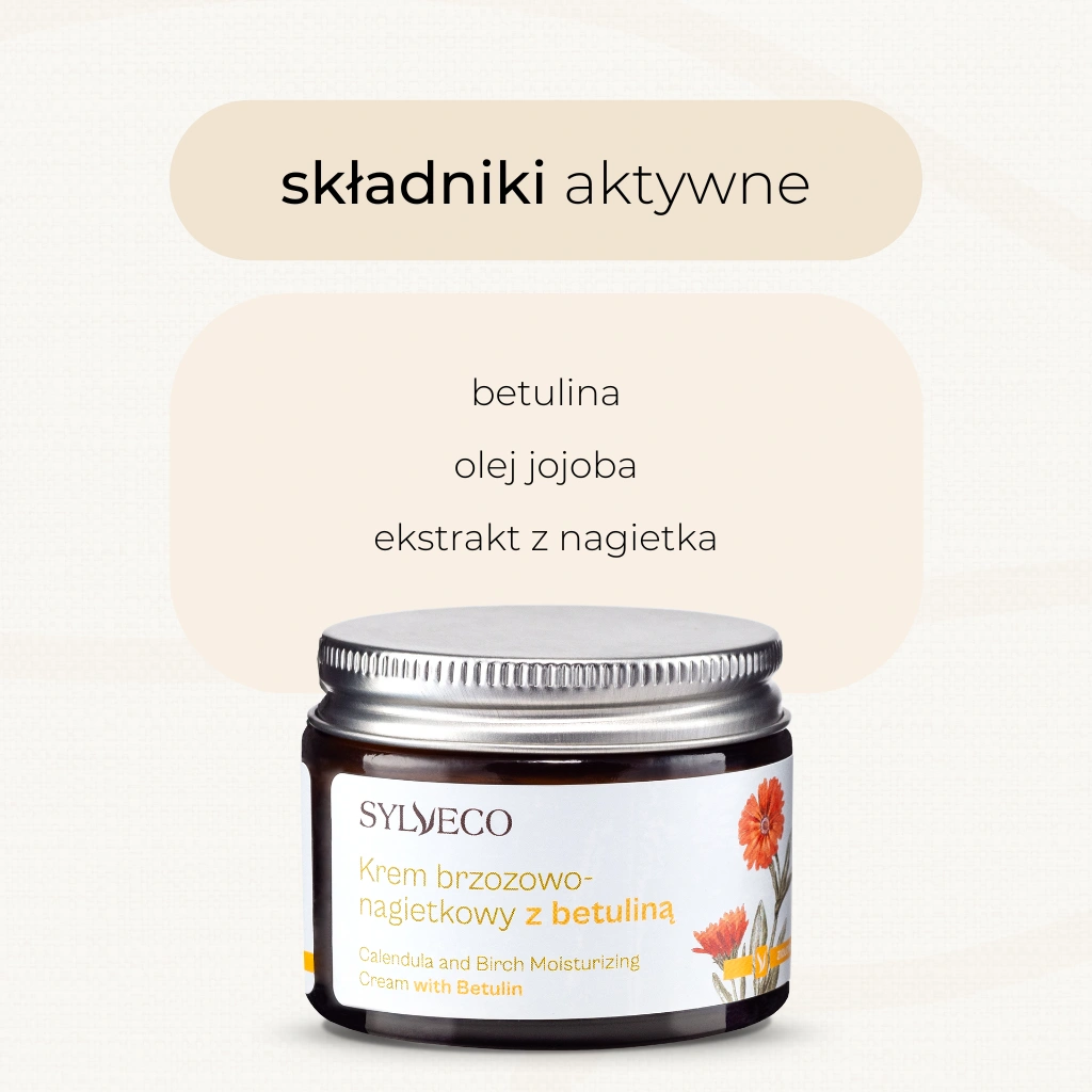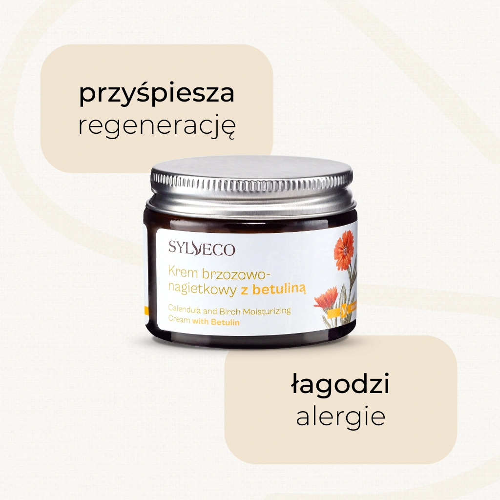 Naturalny krem brzozowo-nagietkowy z betuliną powstał w oparciu o składniki naturalne, które nie podrażniają nawet najbardziej wrażliwej skóry. Głównymi substancjami aktywnymi są betulina i kwas betulinowy, uzyskiwane z kory brzozy, które łagodzą podrażnienia i regenerują skórę. Działanie łagodzące i kojące kremu jest wzmocnione dodatkiem ekstraktu z nagietka, który również odżywia i oczyszcza, przywracając skórze równowagę.