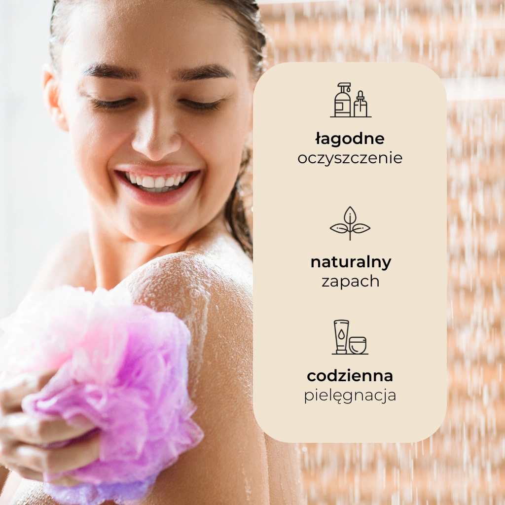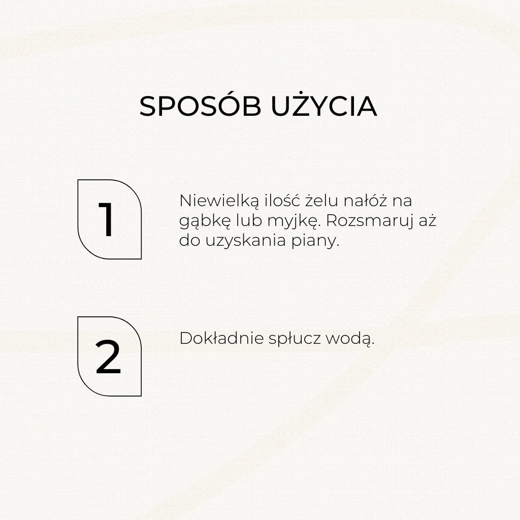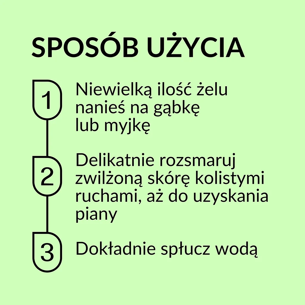 Zawiera łagodne, ale jednocześnie skuteczne środki myjące. Delikatnie oczyszcza skórę, nie powodując podrażnień. Dzięki temu możesz używać żelu do codziennej higieny bez obaw o przesuszenie, pieczenie i swędzenie skóry.