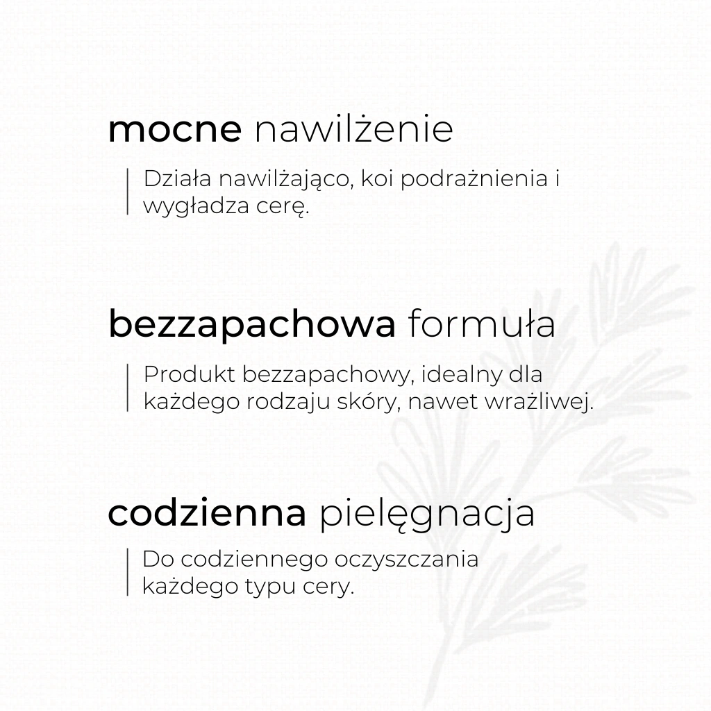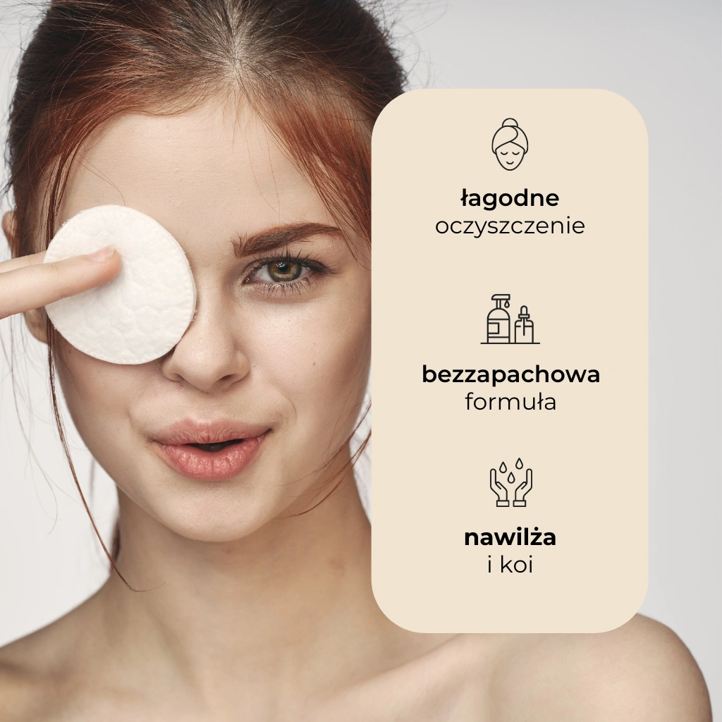 Aby zapewnić maksymalnie łagodne działanie i komfort Twojej skórze, płyn micelarny nie zawiera kompozycji zapachowych. Dzięki temu codzienny demakijaż staje się czystą przyjemnością.