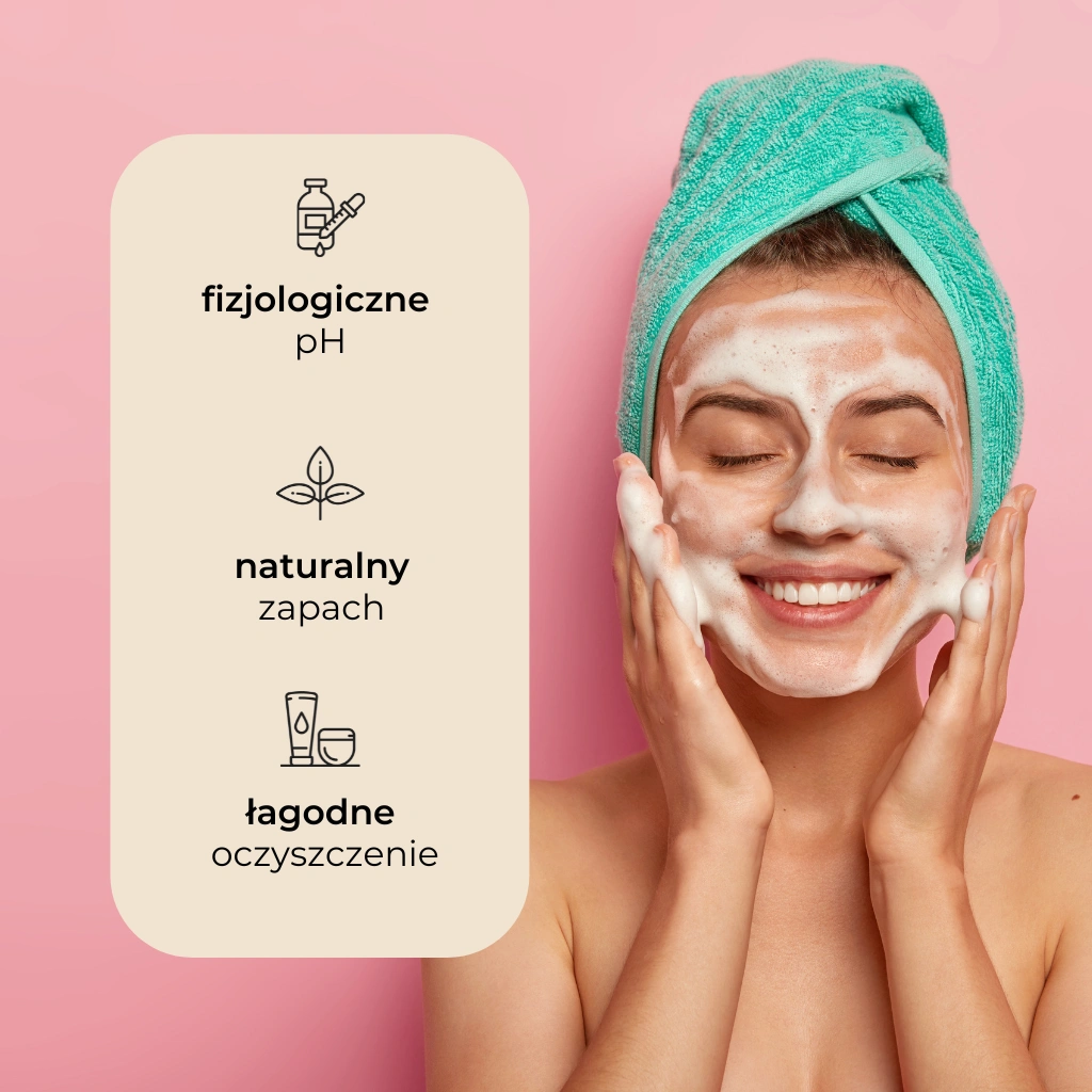 Pianka sprawdzi się w codziennej pielęgnacji każdego typu cery. Zawiera bardzo łagodne, ale skuteczne środki myjące, które nie podrażniają nawet najbardziej wrażliwej skóry. Jej wyjątkowa formuła została stworzona z myślą o Twoim komforcie.