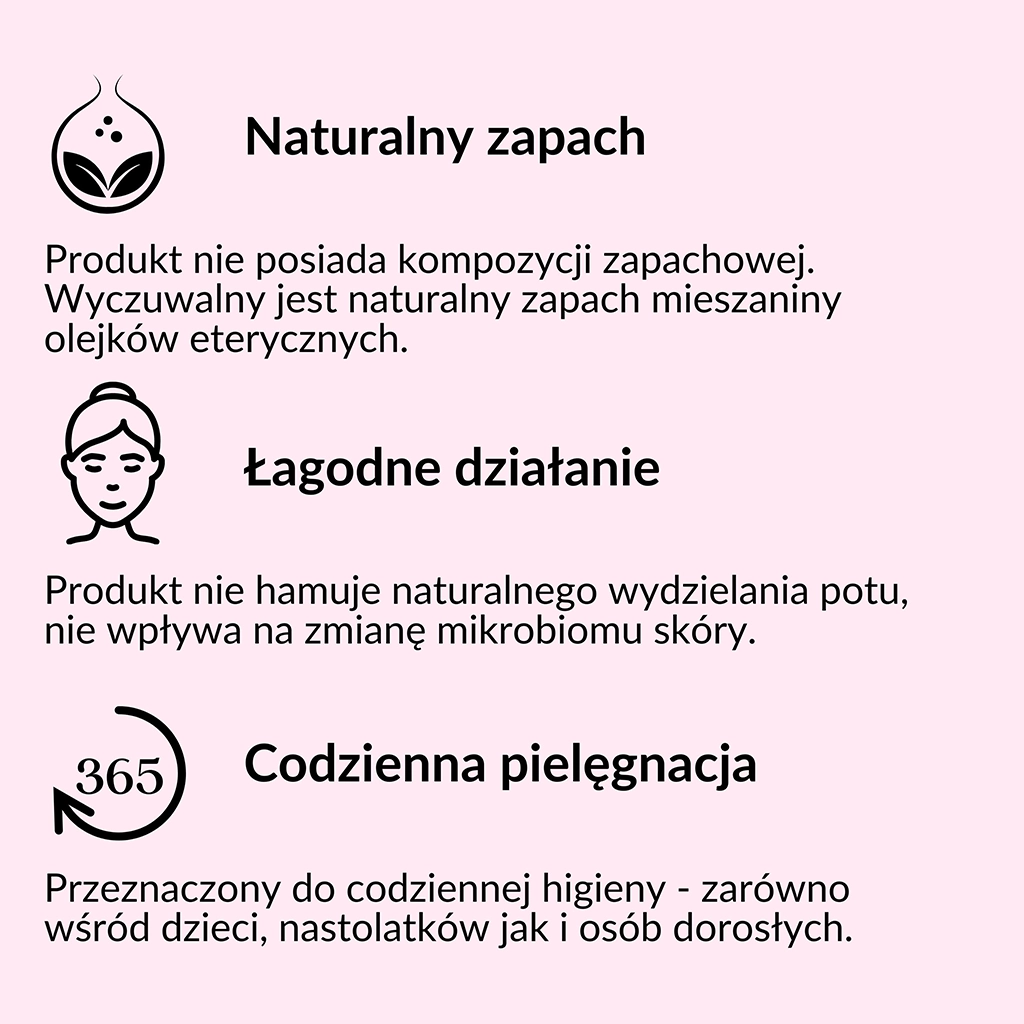 Ma bardzo dobry i delikatny skład, nie podrażnia skóry pod pachami, nawet po goleniu, mimo zawartości olejków eterycznych.