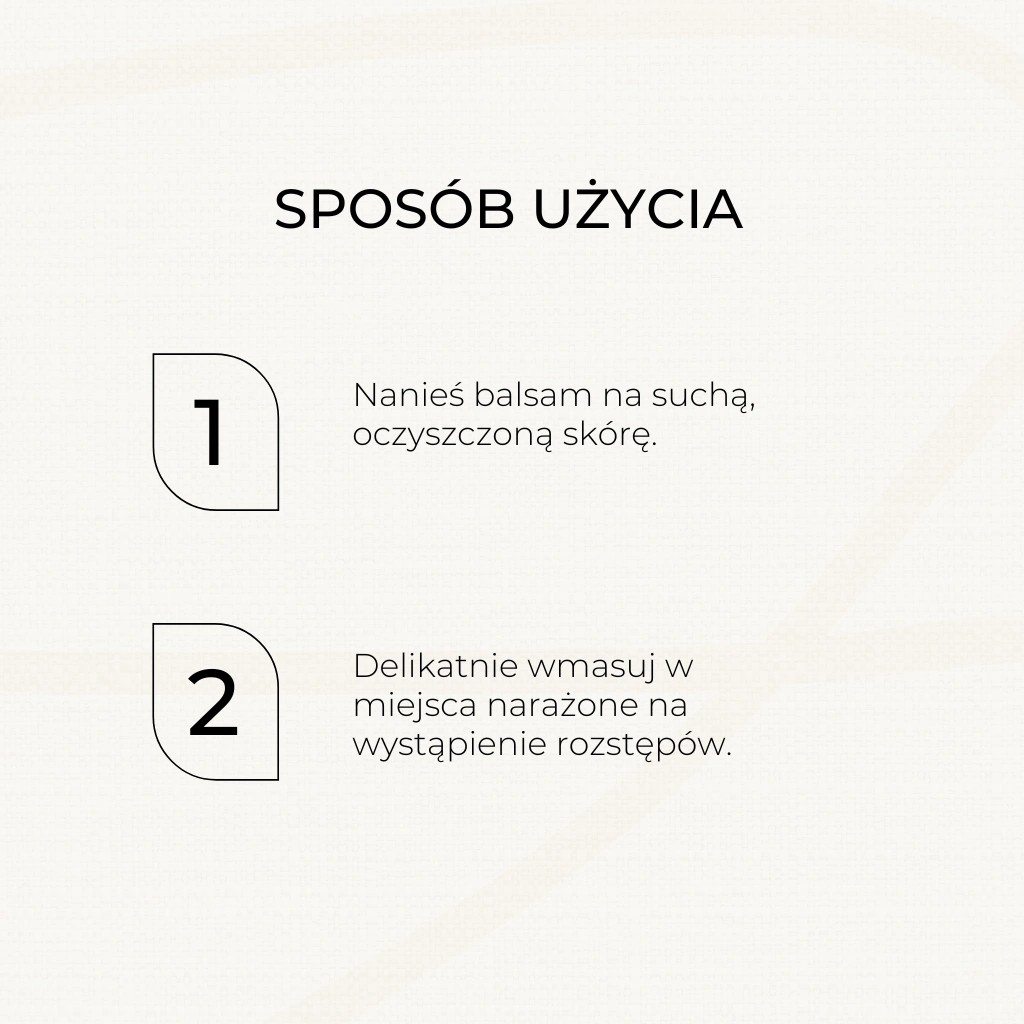 Balsam na rozstępy sprawdzi się w codziennej pielęgnacji każdego typu skóry, szczególnie u kobiet w ciąży, po porodzie oraz u osób narażonych na wahania wagi.