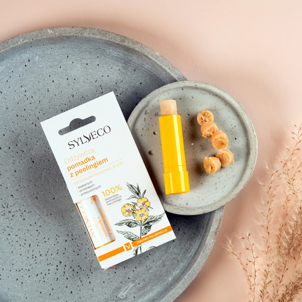 Co sprawia, że SYLVECO Odżywcza pomadka z peelingiem wyróżnia się spośród innych produktów na rynku? Tajemnica tkwi w naszych naturalnych drobinkach ściernych z brązowego cukru trzcinowego. Te delikatne ziarna skutecznie złuszczają martwe komórki skóry, pozostawiając usta miękkie i gładkie.