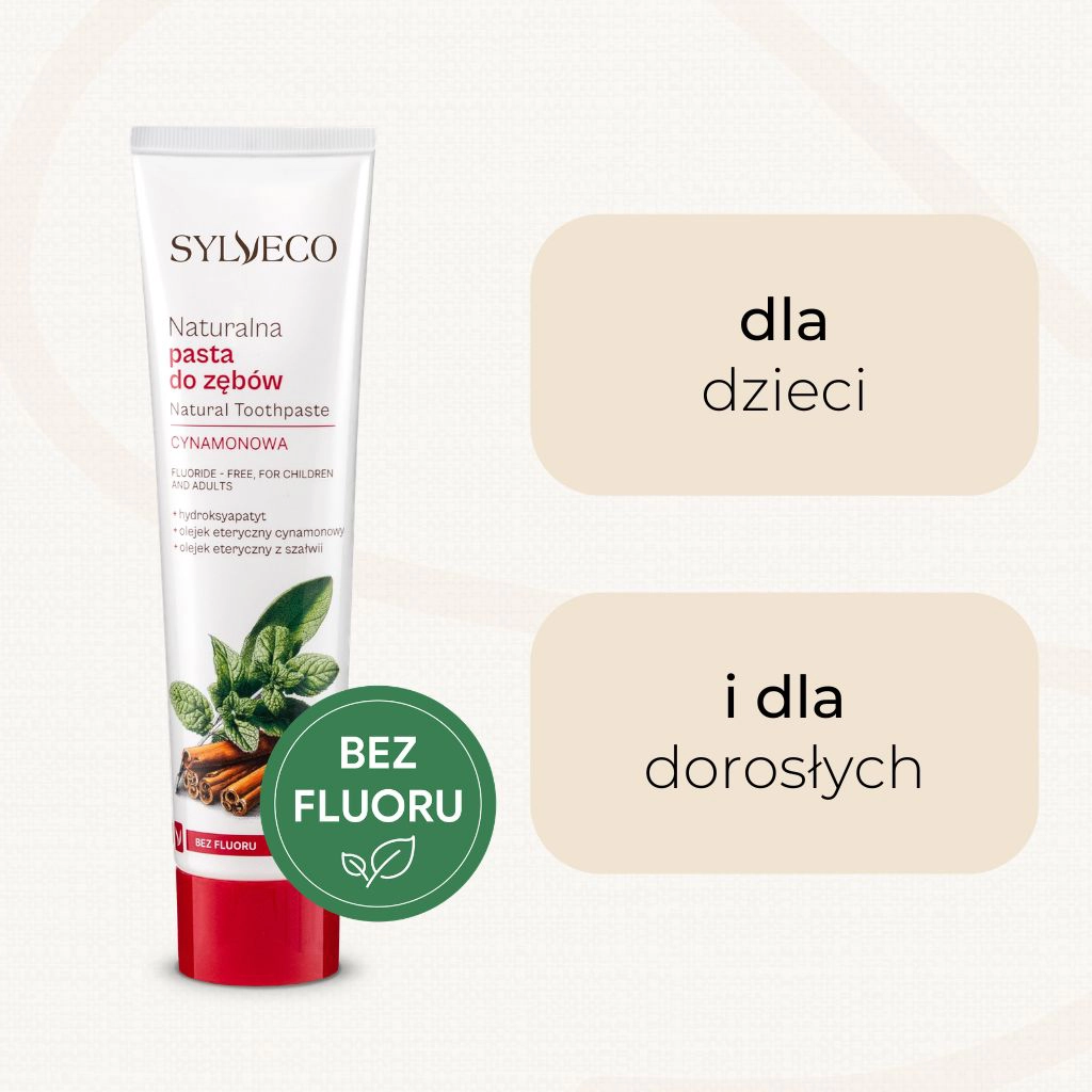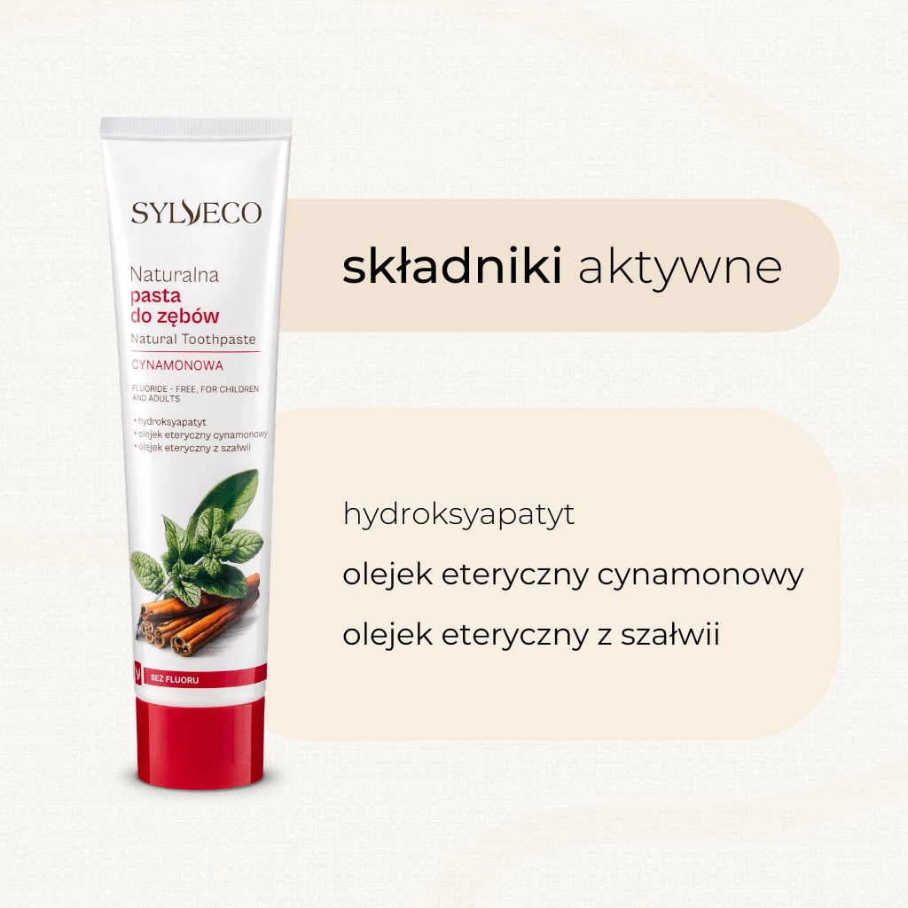 Szukasz pasty do zębów bez fluoru, która jednocześnie realnie wspiera szkliwo i pozostawia długotrwałe uczucie świeżości? Cynamonowa pasta do zębów SYLVECO łączy naturalnie inspirowane składniki z nowoczesnym podejściem do higieny jamy ustnej. Jej formuła została opracowana tak, aby nie tylko czyścić zęby, ale także wspomagać odbudowę szkliwa oraz zapewniać codzienną ochronę przed czynnikami sprzyjającymi próchnicy.