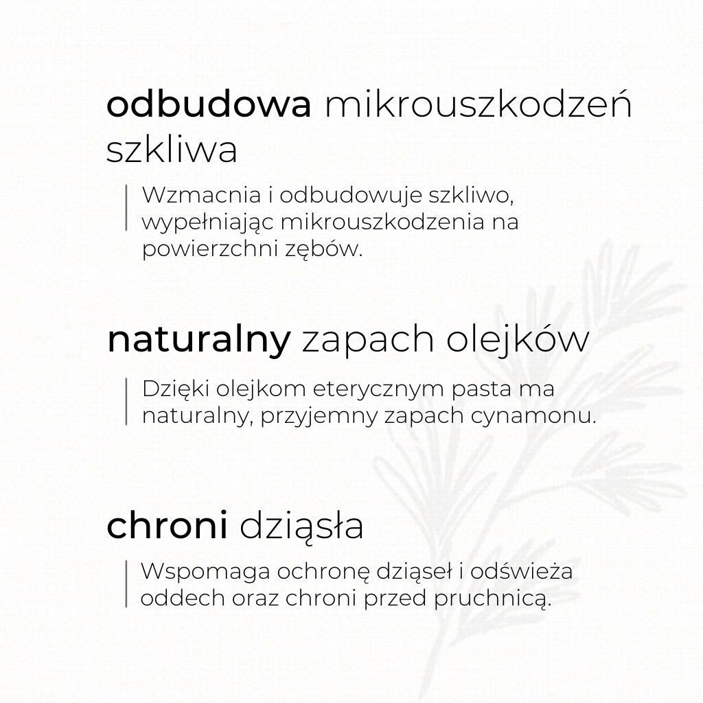 | Składniki wiodące | Hydroksyapatyt, Olejek eteryczny cynamonowy, Olejek z szałwii |