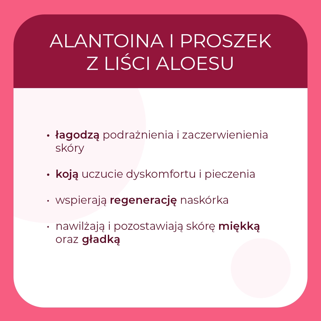 | Składniki wiodące | Alantoina, Chlorek glinu, Gliceryna, Pantenol, Proszek z liści aloesu |
