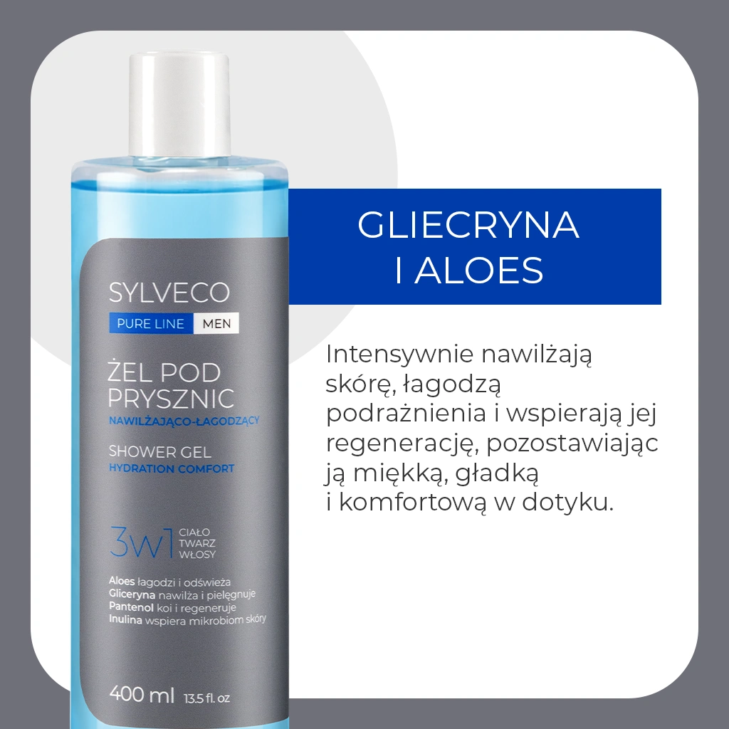 Panthenol, alantoina oraz aloes działają kojąco i wspierają regenerację skóry. Pomagają zmniejszyć uczucie podrażnienia, szczególnie po goleniu, treningu lub długim dniu. Skóra staje się spokojniejsza, bardziej odporna i mniej podatna na dyskomfort. To doskonały wybór dla mężczyzn z wrażliwą lub przesuszoną skórą.