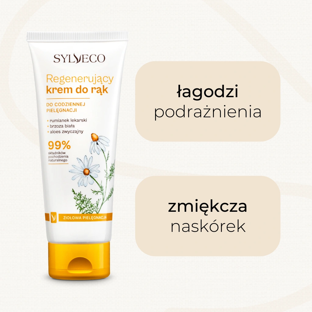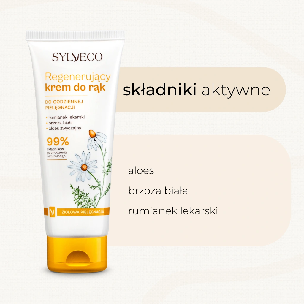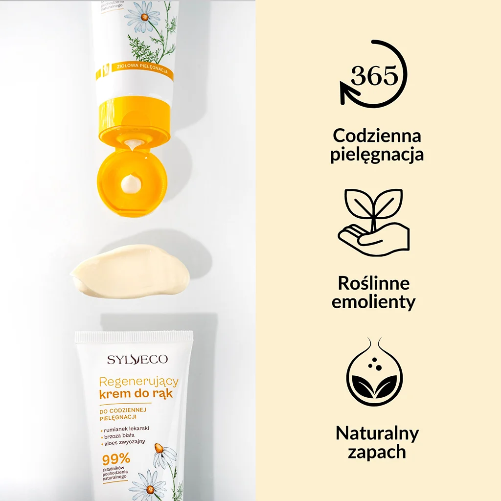 Naturalny krem regenerujący do rąk, stworzony wyłącznie z naturalnych składników, jest idealny do codziennej pielęgnacji skóry suchej i zniszczonej. Zapewnia intensywne nawilżenie i odżywienie, przywracając dłoniom gładkość, elastyczność i miękkość. Formuła kremu opiera się na roślinnych ekstraktach z rumianku, brzozy oraz aloesu, które oferują ochronę, działają łagodząco oraz wspierają naturalne procesy regeneracji skóry.
