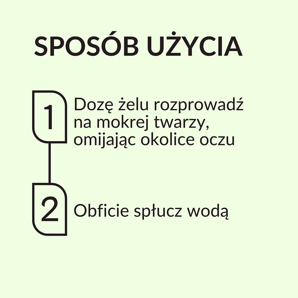 Sposób użycia | Dozę żelu rozprowadzić na mokrej twarzy, omijając okolice oczu. Obficie spłukać wodą. |