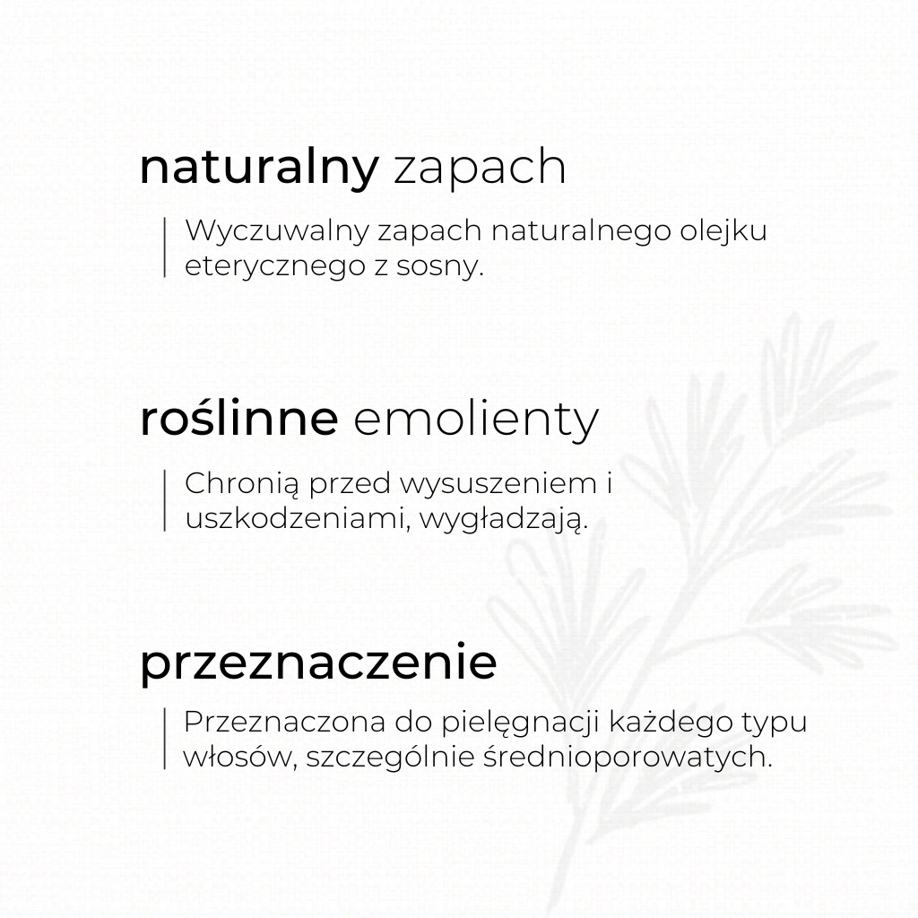 Wygładzająca odżywka do włosów posiada delikatny zapach olejku sosnowego.