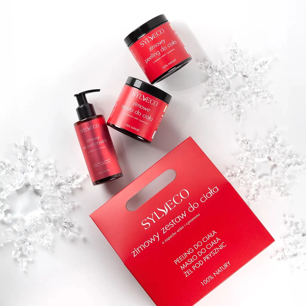 Czerwony zestaw zimowych kosmetyków SYLVECO to zaproszenie do świata aromatycznego odprężenia, idealnego na chłodne dni i długie, zimowe wieczory. Połączenie zapachu wiśni i cynamonu wprowadza do pielęgnacji nutę świątecznej magii, rozgrzewając zmysły i otulając ciało przytulnym, owocowo-korzennym aromatem. To zestaw, który sprawia, że nawet codzienna pielęgnacja zamienia się w moment przyjemności – zarówno jako prezent dla bliskiej osoby, jak i wyjątkowy upominek dla samej siebie.