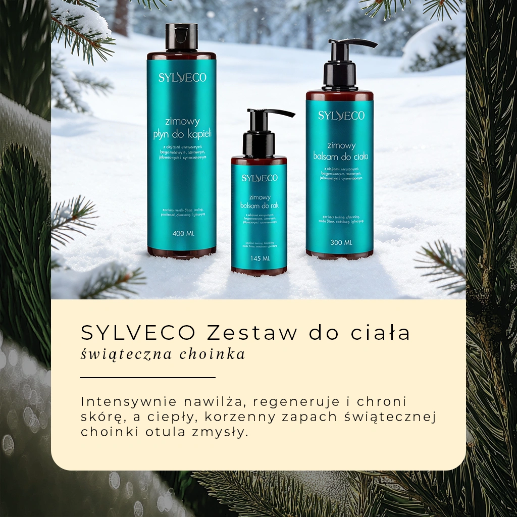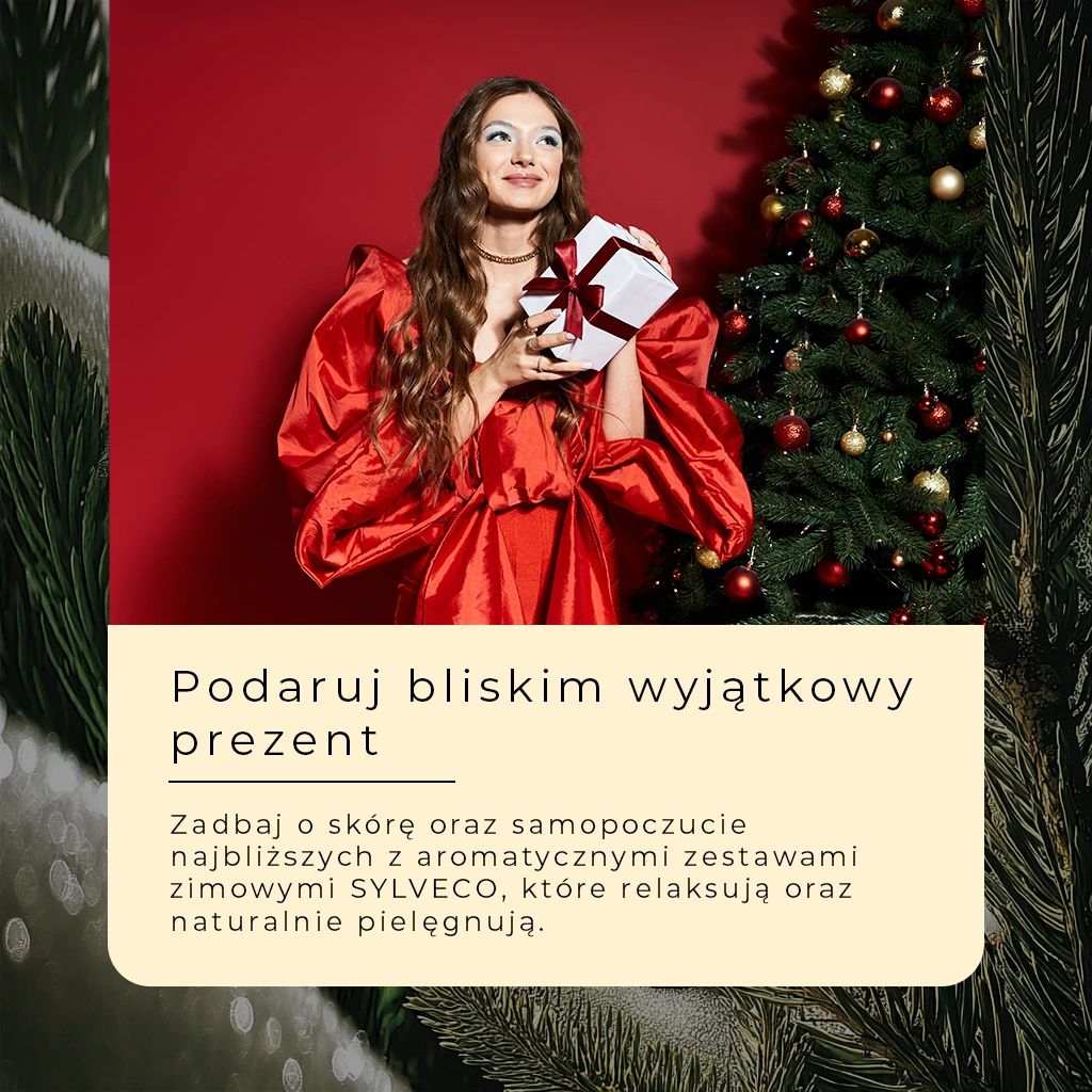 Zestaw SYLVECO o aromacie świątecznej choinki to wyjątkowa propozycja na zimowe chwile spokoju. Nuty sosny, jałowca, bergamotki i cynamonu przenoszą w magiczny las, otulając ciało i zmysły harmonią. Idealny prezent dla bliskiej osoby lub dla siebie – pozwala zwolnić tempo i poczuć atmosferę zimowych dni.