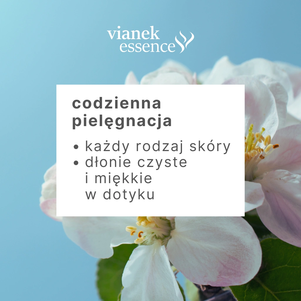 Łagodna formuła mydła skutecznie usuwa codzienne zanieczyszczenia, nie naruszając naturalnej bariery ochronnej skóry. Dzięki temu dłonie pozostają czyste, miękkie i przyjemne w dotyku, bez uczucia ściągnięcia czy przesuszenia. Regularne stosowanie pozwala utrzymać komfort i higienę rąk, zachowując ich zdrowy wygląd i gładkość.
