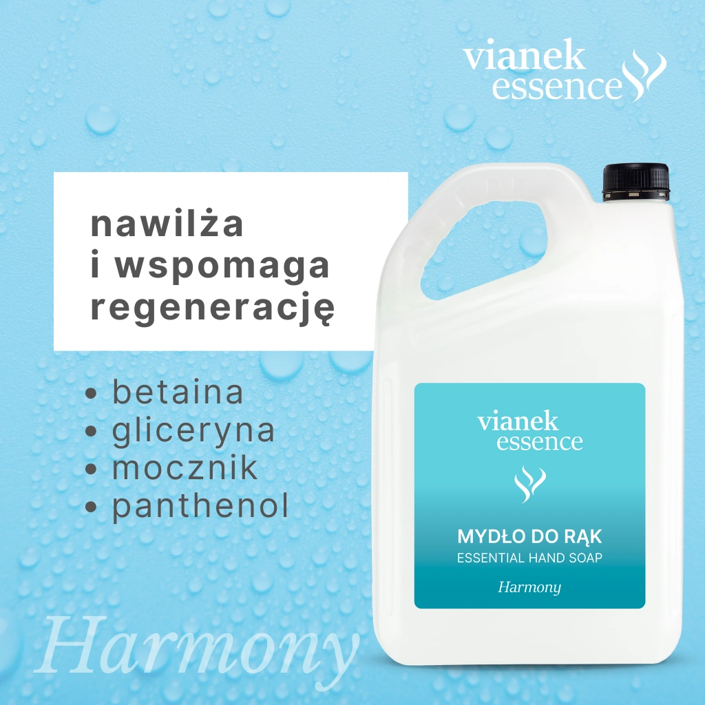 Mydło do rąk Harmony skutecznie oczyszcza, a jednocześnie dba o kondycję skóry dłoni. Wzbogacone o betainę, glicerynę, mocznik i pantenol — łagodzi, nawilża i zapobiega przesuszeniu. Formułę dopełnia elegancki, zmysłowy zapach inspirowany nutami cytrusów, białych kwiatów i wanilii, który sprawia, że każdorazowe mycie dłoni staje się przyjemnym rytuałem.