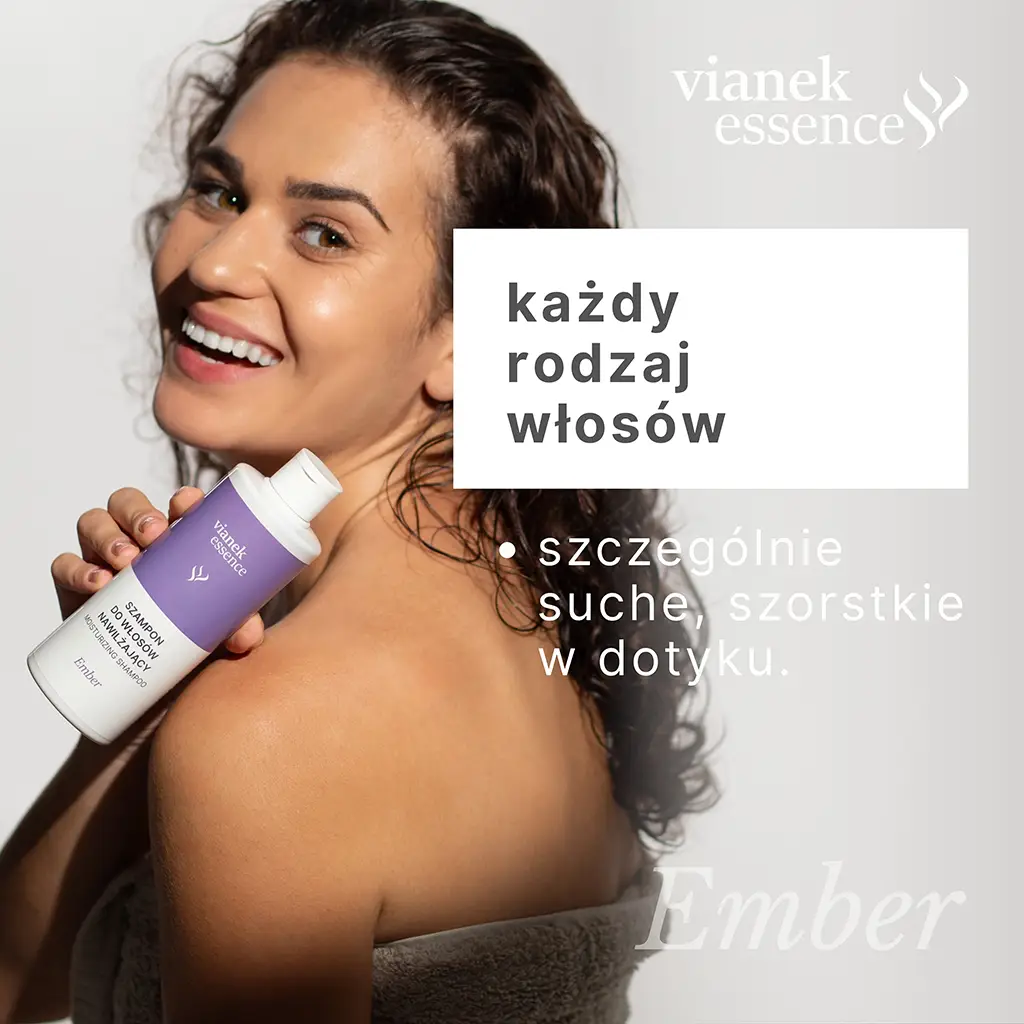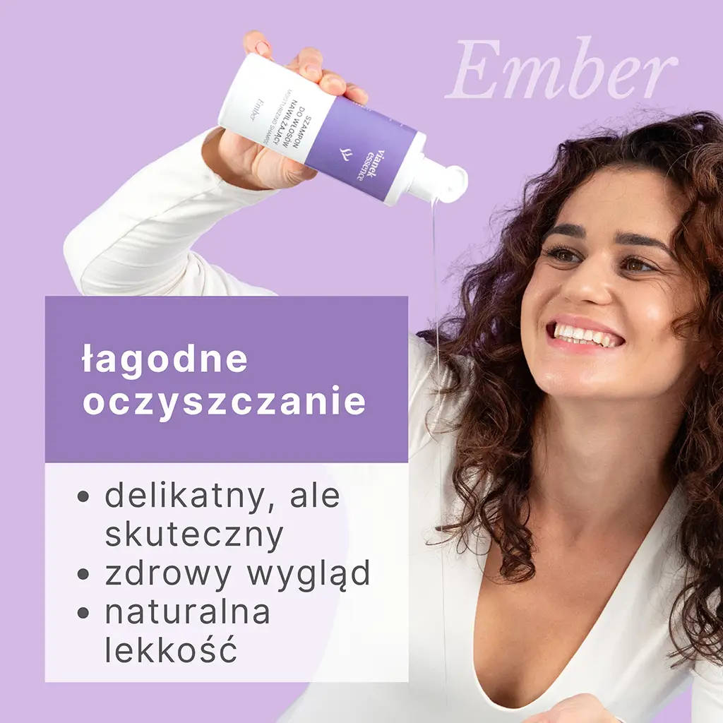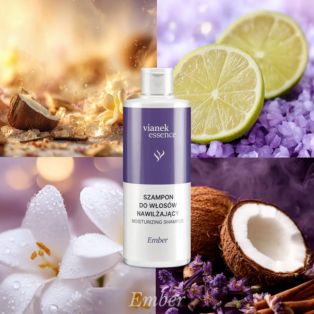 Nawilżający szampon z linii Ember delikatnie myje włosy oraz skórę głowy, jednocześnie zapewniając im intensywne nawilżenie. Zawarte w nim gliceryna, trehaloza, mocznik i ekstrakt z lnu sprawiają, że włosy stają się gładkie, miękkie i pełne blasku, a skóra głowy odzyskuje komfort i świeżość. Subtelny aromat łączy w sobie energetyzujące cytrusy, nuty kwiatowe i kokosowe, wzbogacone eleganckim akordem wanilii, piżma i drewna, przemieniając codzienną pielęgnację w przyjemny rytuał.