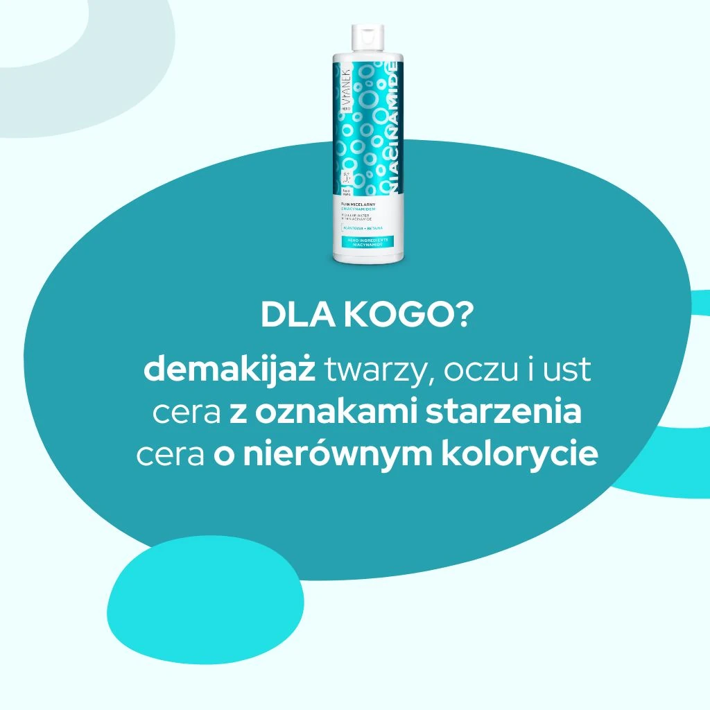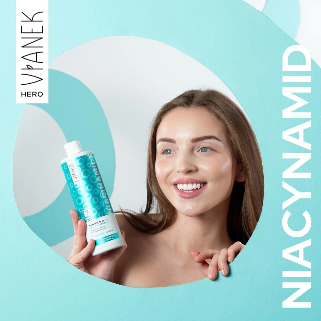 Płyn micelarny z niacynamidem to idealny sposób na skuteczne usunięcie makijażu i zanieczyszczeń, jednocześnie dbając o równowagę skóry. Jego lekka formuła oczyszcza bez naruszania bariery hydrolipidowej, pozostawiając skórę świeżą, miękką i promienną.