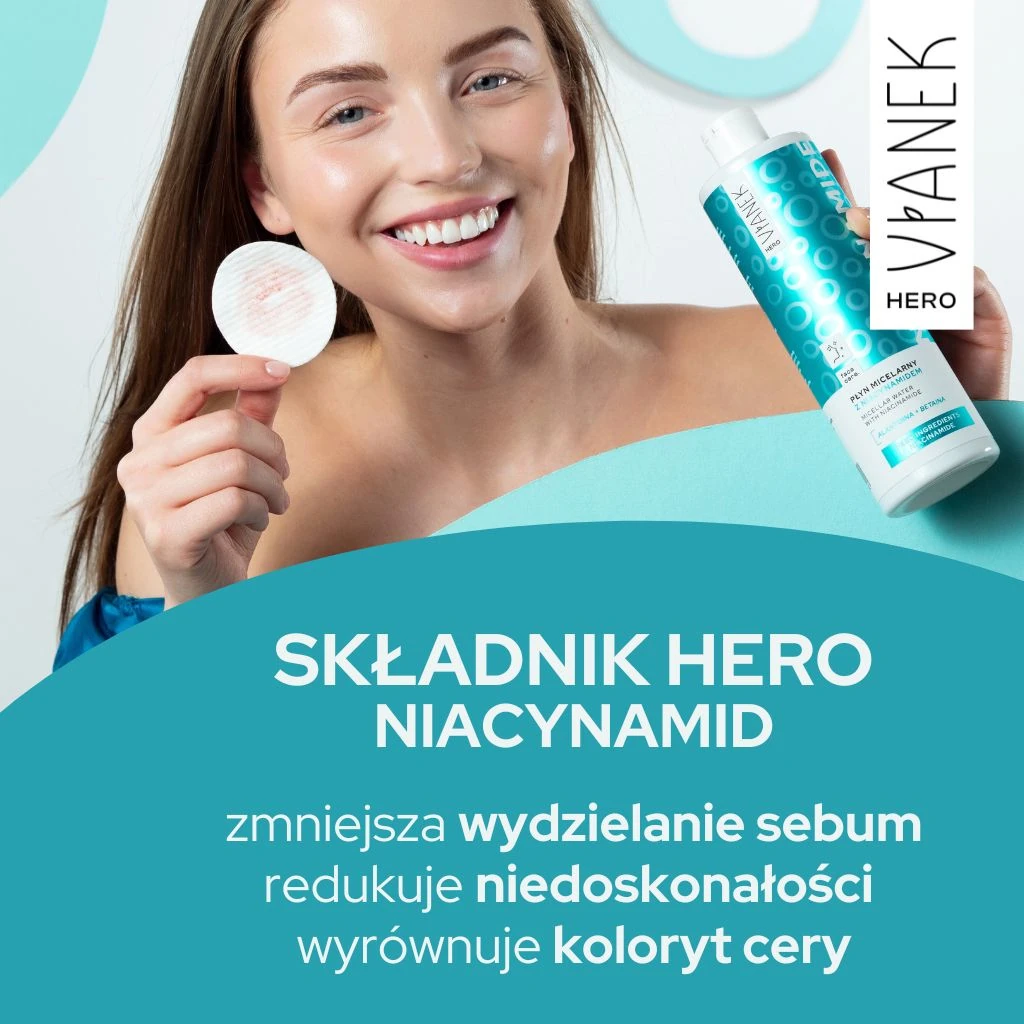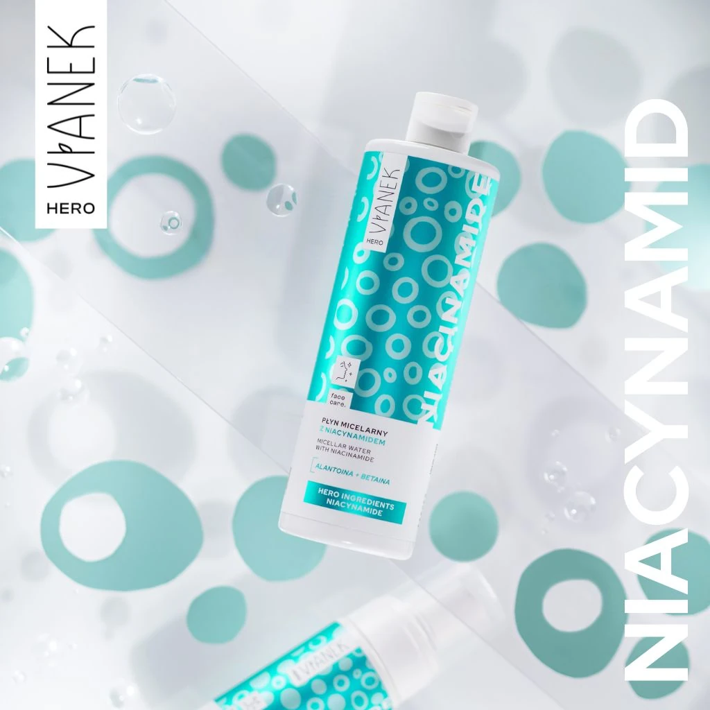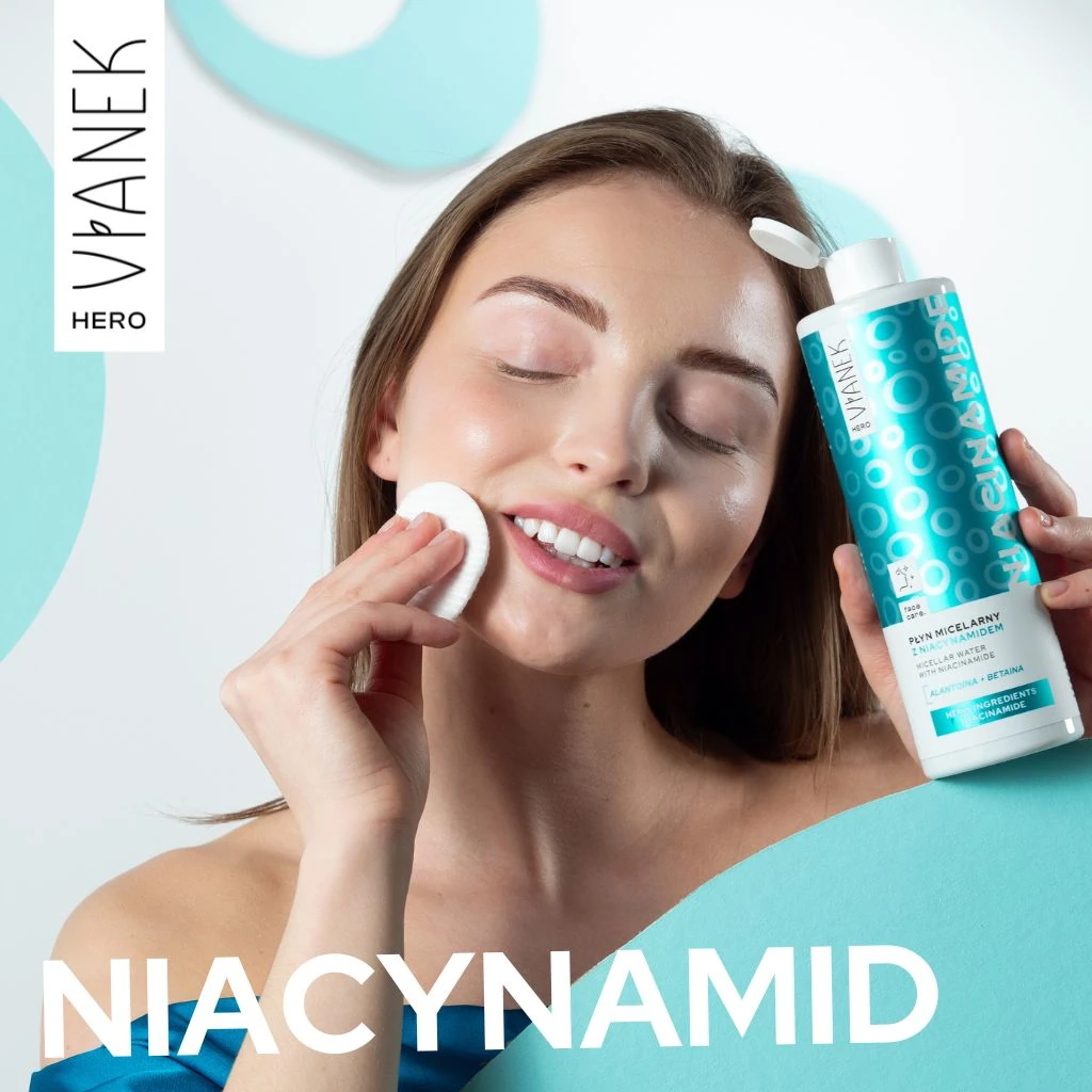 Usuń makijaż i odśwież swoją skórę z naszym płynem micelarnym z niacynamidem. Jego delikatna formuła skutecznie usuwa makijaż i zanieczyszczenia, jednocześnie dbając o równowagę skóry. Pielęgnacyjny superhero – niacynamid wspomaga nawilżenie, koi podrażnienia i wyrównuje koloryt cery.