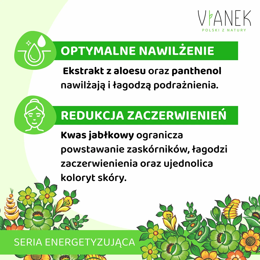 Normalizujący tonik do twarzy VIANEK to codzienna dawka odświeżenia i pielęgnacji, skierowana przede wszystkim do cery mieszanej, tłustej i problematycznej. Posiada niskie pH (3.0). Przywraca skórze po oczyszczaniu odpowiednią równowagę i przygotowuje ją na dalsze etapy pielęgnacji, ułatwiając przenikanie składników zawartych w kosmetykach w głąb skóry.