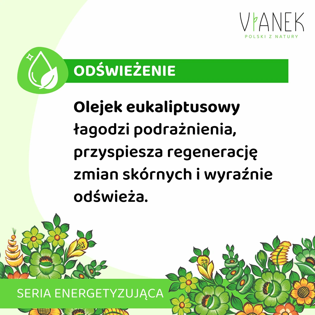 Żel posiada wygodną pompkę, która ułatwia higieniczne dozowanie produktu. Jego niezwykły, eukaliptusowy aromat sprawia, że codzienne oczyszczanie twarzy staje się prawdziwą przyjemnością. Naturalny żel do mycia twarzy pozwoli Ci przywrócić skórze zdrowy i promienny wygląd i utrzymać ją w doskonałej kondycji na dłuższy czas.