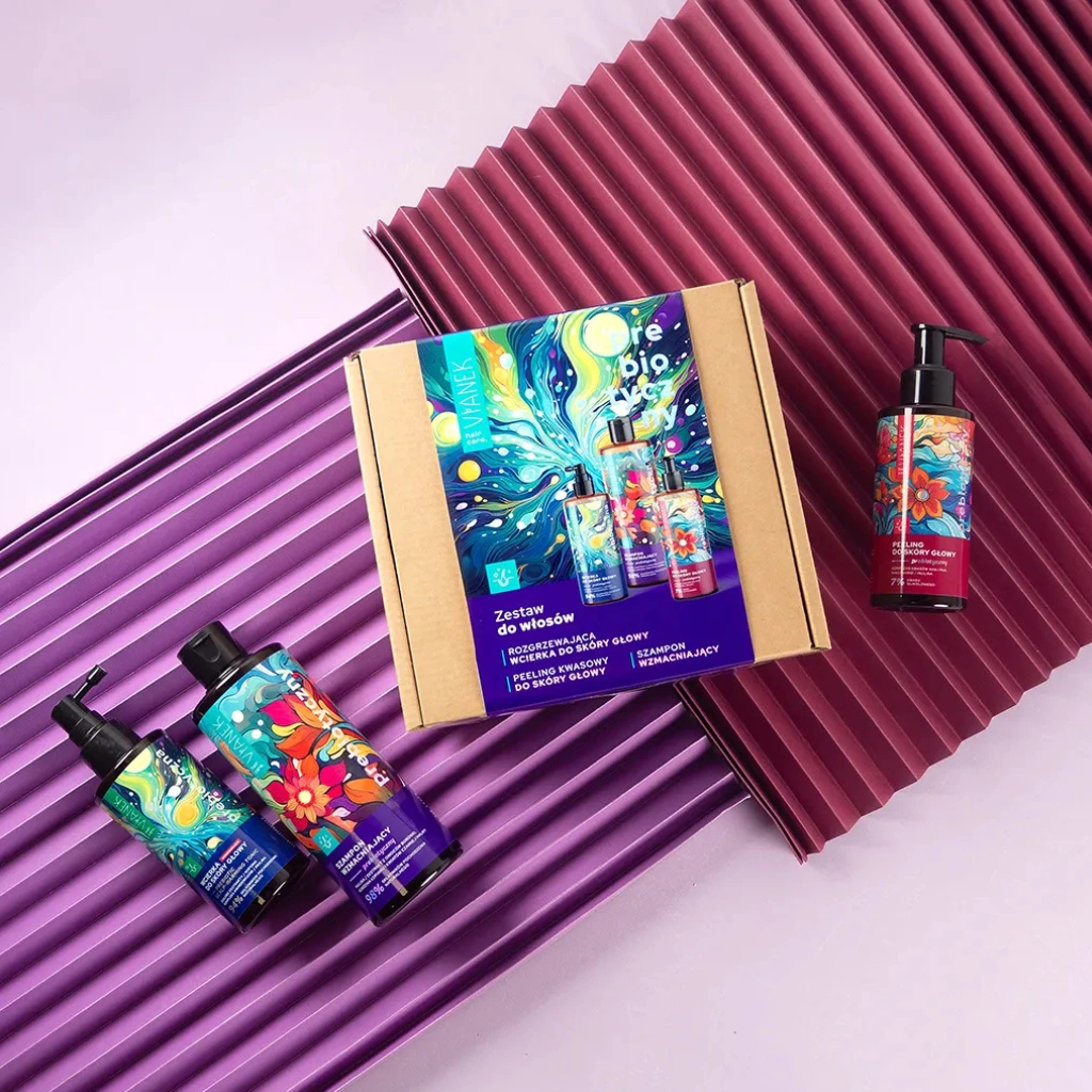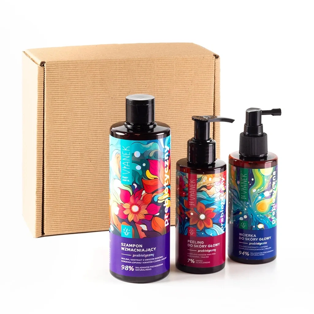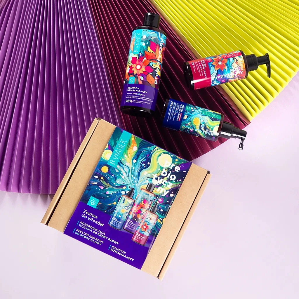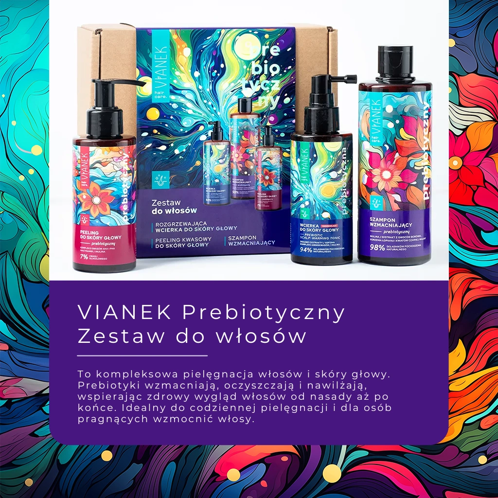 Wybierz zestaw VIANEK Prebiotyczny do włosów, aby cieszyć się zdrowymi, pełnymi życia włosami i zadbaną skórą głowy każdego dnia. Idealny na prezent dla bliskiej osoby lub jako kompleksowa pielęgnacja wymagających włosów i skóry głowy.