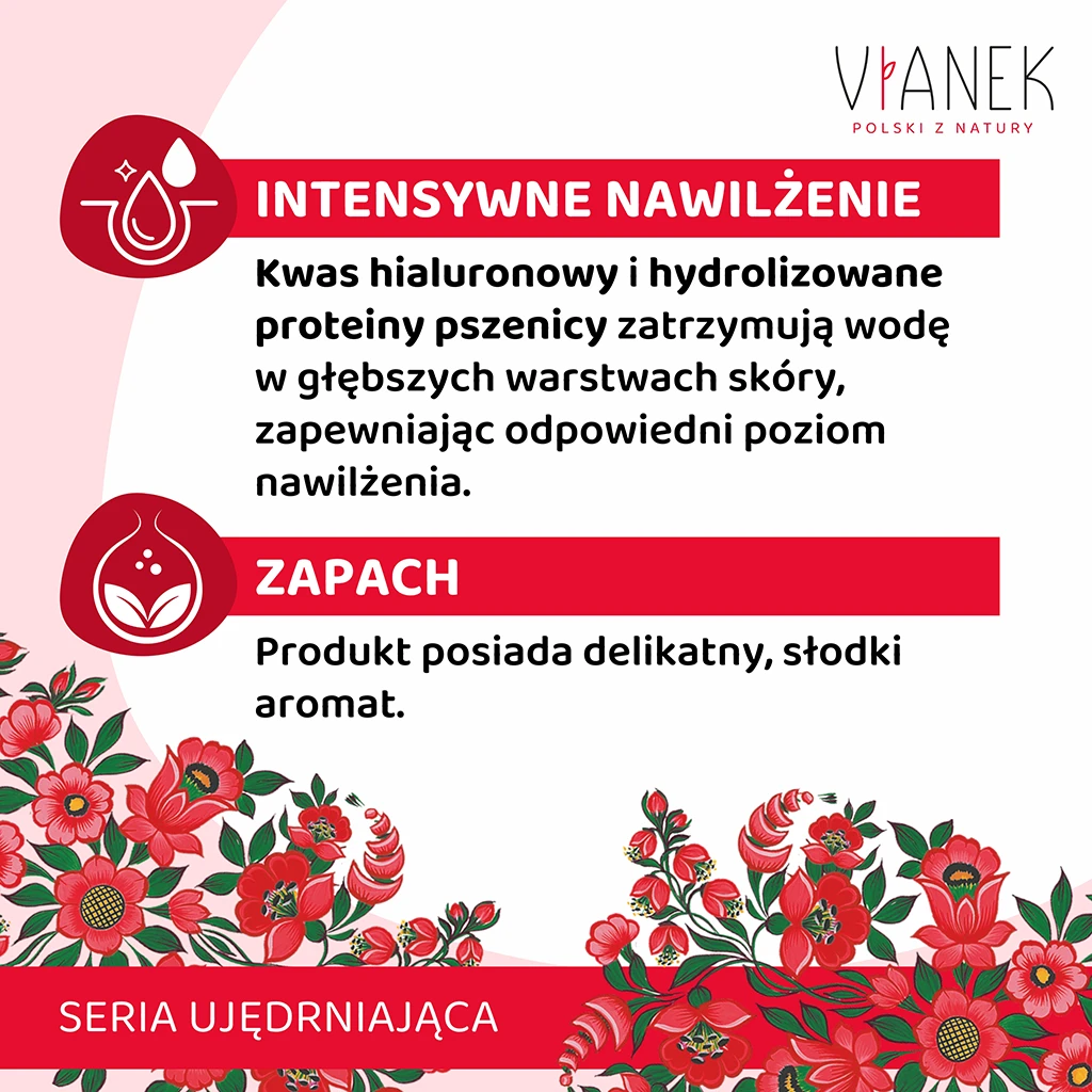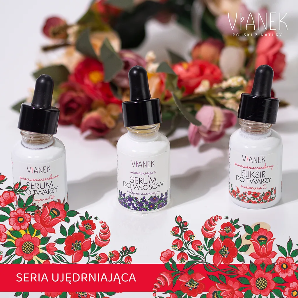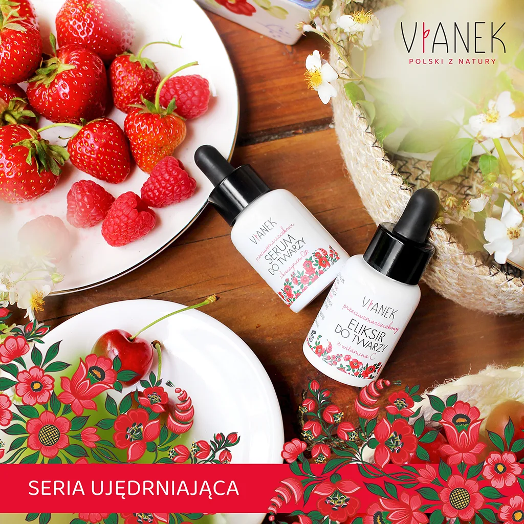 Eliksir z Vianka z serii czerwonej stosuję również z innymi produktami tego producenta (serum i kremu na noc). Już po paru tygodniach stosowania zauważyłam że moja skóra jest bardziej napięta i lepiej odżywiona. Produkt jest bardzo wydajny i ma obłędny zapach. Ponadto jego cena jest bardzo niska biorąc pod uwagę jego naturalny skład.