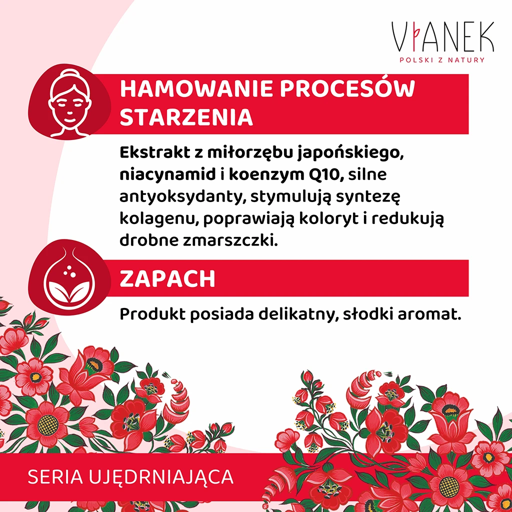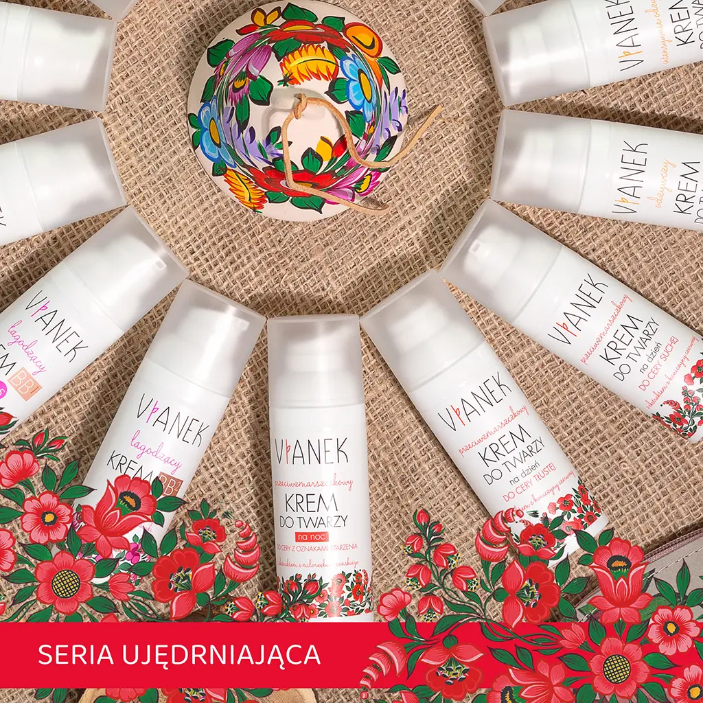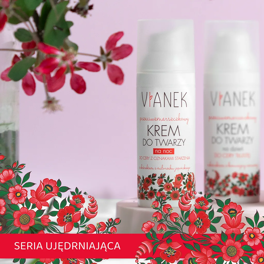 Zapewnij swojej skórze zasłużoną regenerację podczas snu dzięki naszemu przeciwzmarszczkowemu kremowi na noc VIANEK. Jest on dedykowany do wieczornej pielęgnacji każdego typu cery, a szczególnie do dojrzałej i z oznakami starzenia.