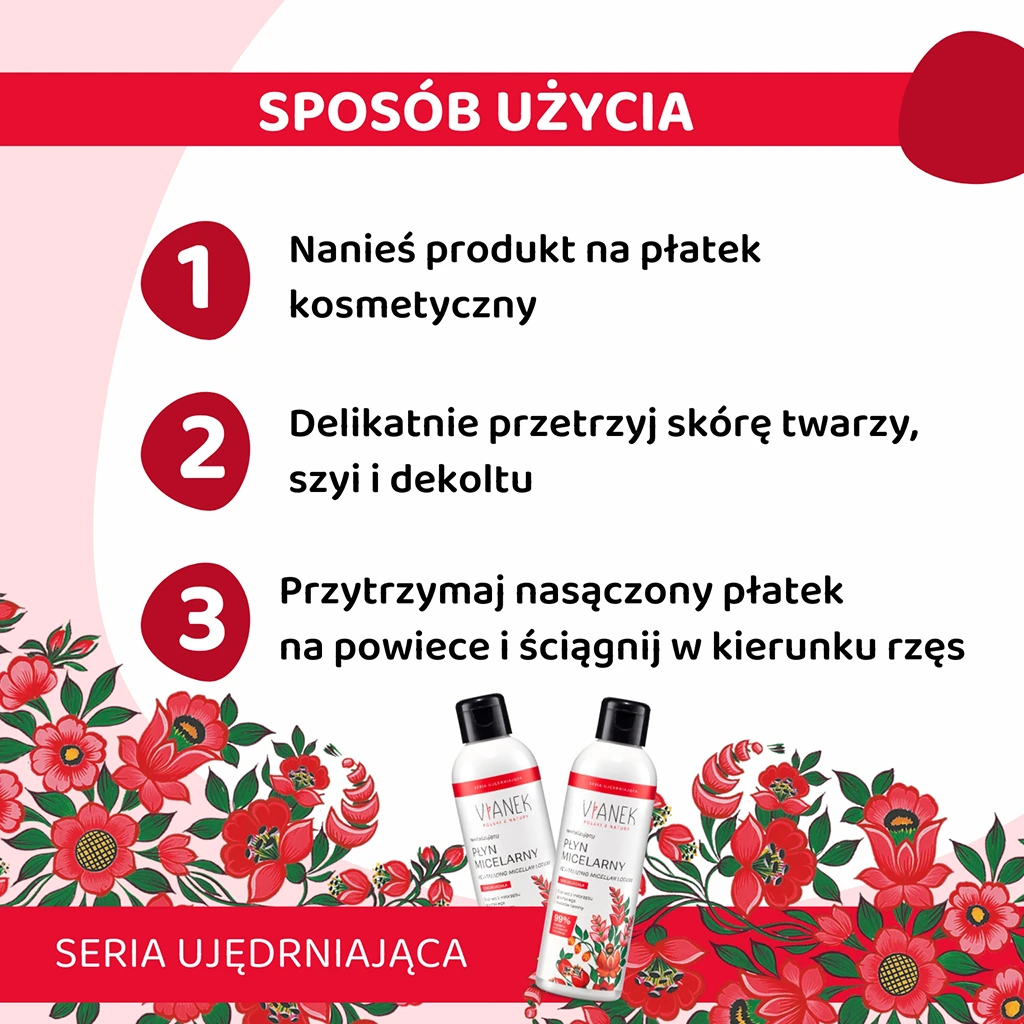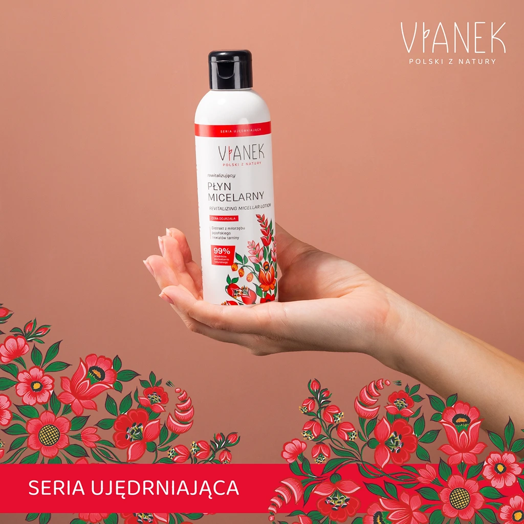 Odkryj doskonałe połączenie oczyszczania, rewitalizacji i ochrony skóry w jednym produkcie. VIANEK rewitalizujący płyn micelarny jest stworzony do codziennego demakijażu. Skutecznie usuwa zanieczyszczenia, dbając jednocześnie o zachowanie naturalnej równowagi skóry. Szczególnie docenią go osoby z cerą dojrzałą lub z pierwszymi oznakami starzenia, skórą mało elastyczną.