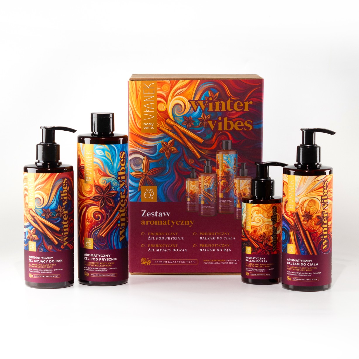 Odkryj magię zimowego relaksu z serią "Winter Vibes" – idealnym towarzyszem chłodnych wieczorów, który zamieni Twój dom w luksusowe SPA. Ta limitowana, zimowa kolekcja kosmetyków o zapachu grzanego wina wprowadzi Cię w przytulny nastrój, otulając aromatami goździków, cynamonu, soczystej pomarańczy, winogron, drzewa cedrowego i brązowego cukru.