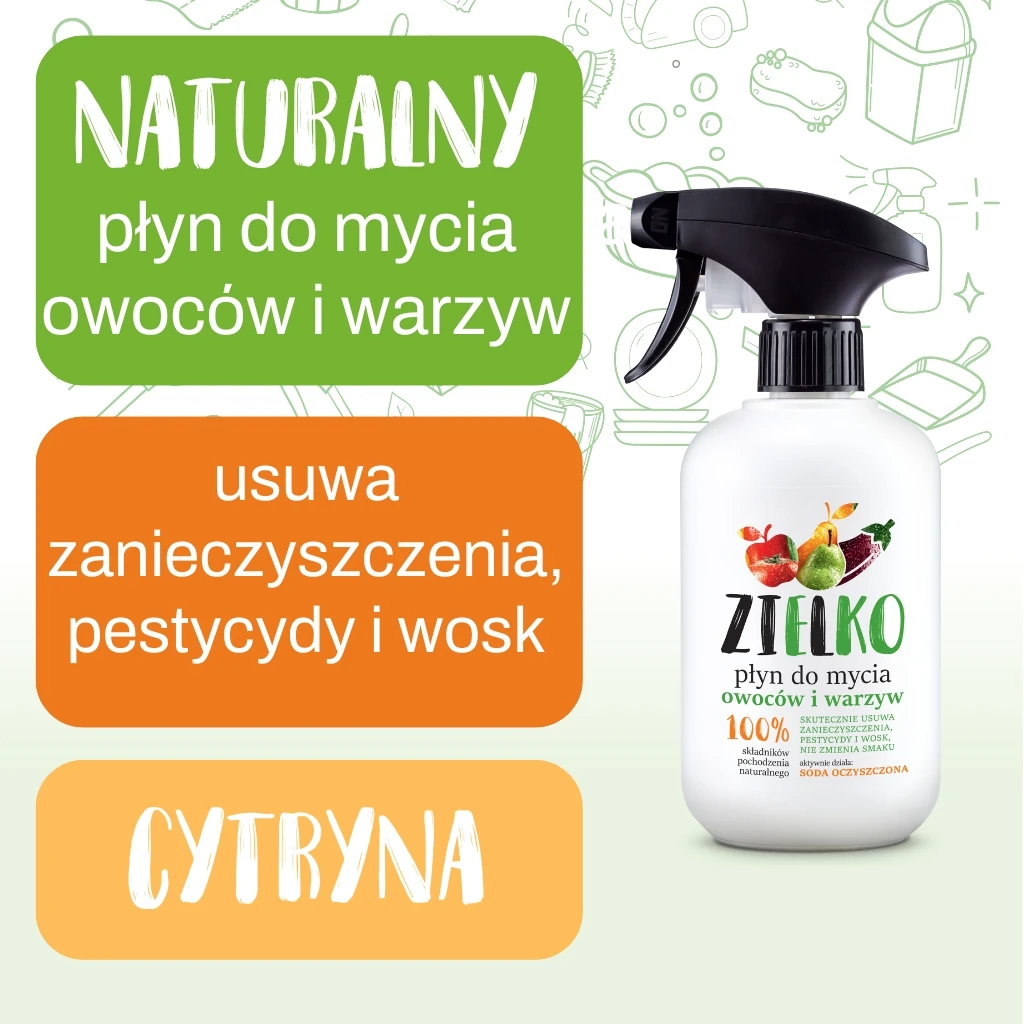 Płyn do mycia owoców i warzyw ZIELKO posiada naturalnym cytrynowy aromat. Cytrusowy zapach nie przenosi się na żywność, ale daje poczucie czystości i świeżości.
