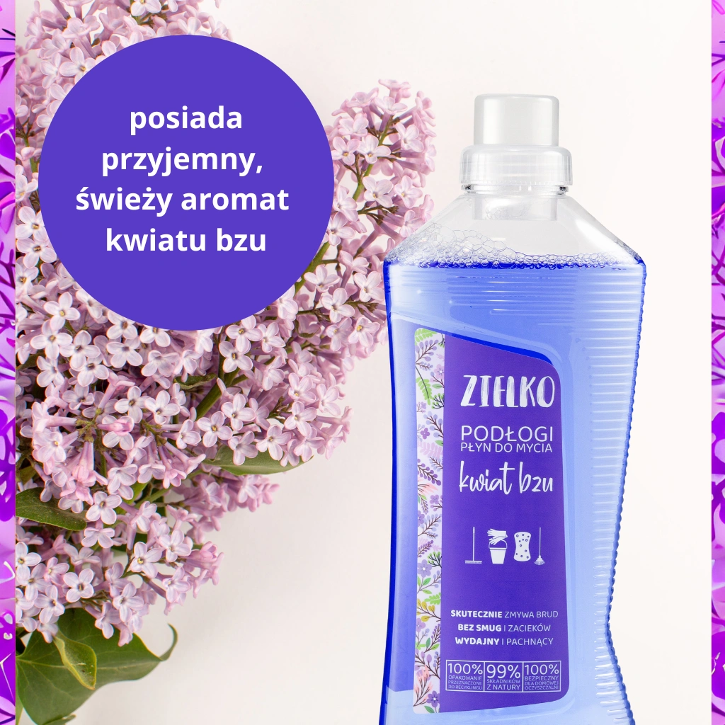 Zmień codzienne sprzątanie w prawdziwy rytuał świeżości z ZIELKO Płynem do mycia podłóg Kwiat bzu. Ten wyjątkowy środek łączy naturalną skuteczność z delikatnym, kwiatowym zapachem, który wypełni Twój dom przyjemnym aromatem wiosny. Starannie opracowana formuła skutecznie usuwa zabrudzenia z różnych powierzchni — paneli, płytek czy żywicy — nie pozostawiając smug ani zacieków. Dzięki składnikom ograniczającym ponowne osadzanie się kurzu, podłogi dłużej zachowują czystość i świeży wygląd. Produkt zawiera mniej niż 5% amfoterycznych i niejonowych związków powierzchniowo czynnych oraz alkohol izopropylowy, co sprawia, że jest bezpieczny, wydajny i przyjemny w użyciu.