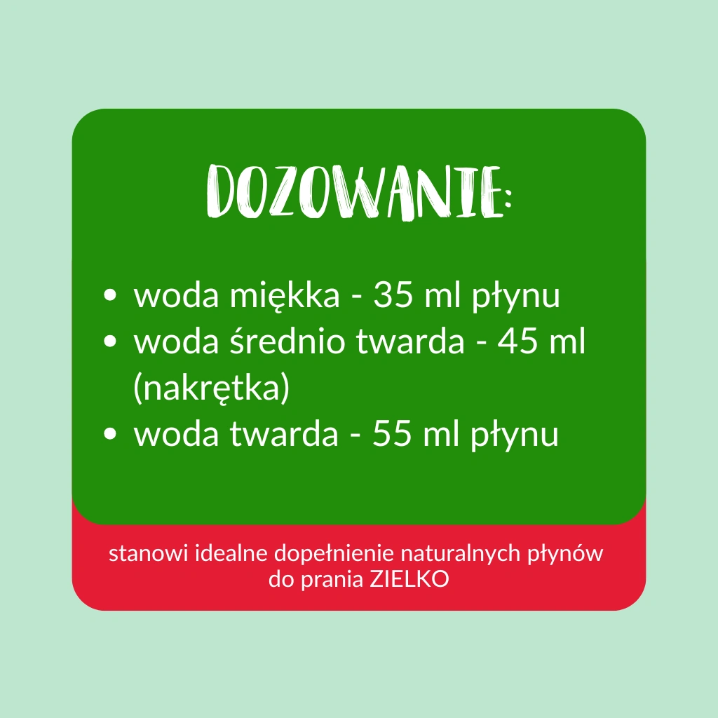 Dozowanie:Stanowi idealne dopełnienie naturalnych płynów do prania ZIELKO.