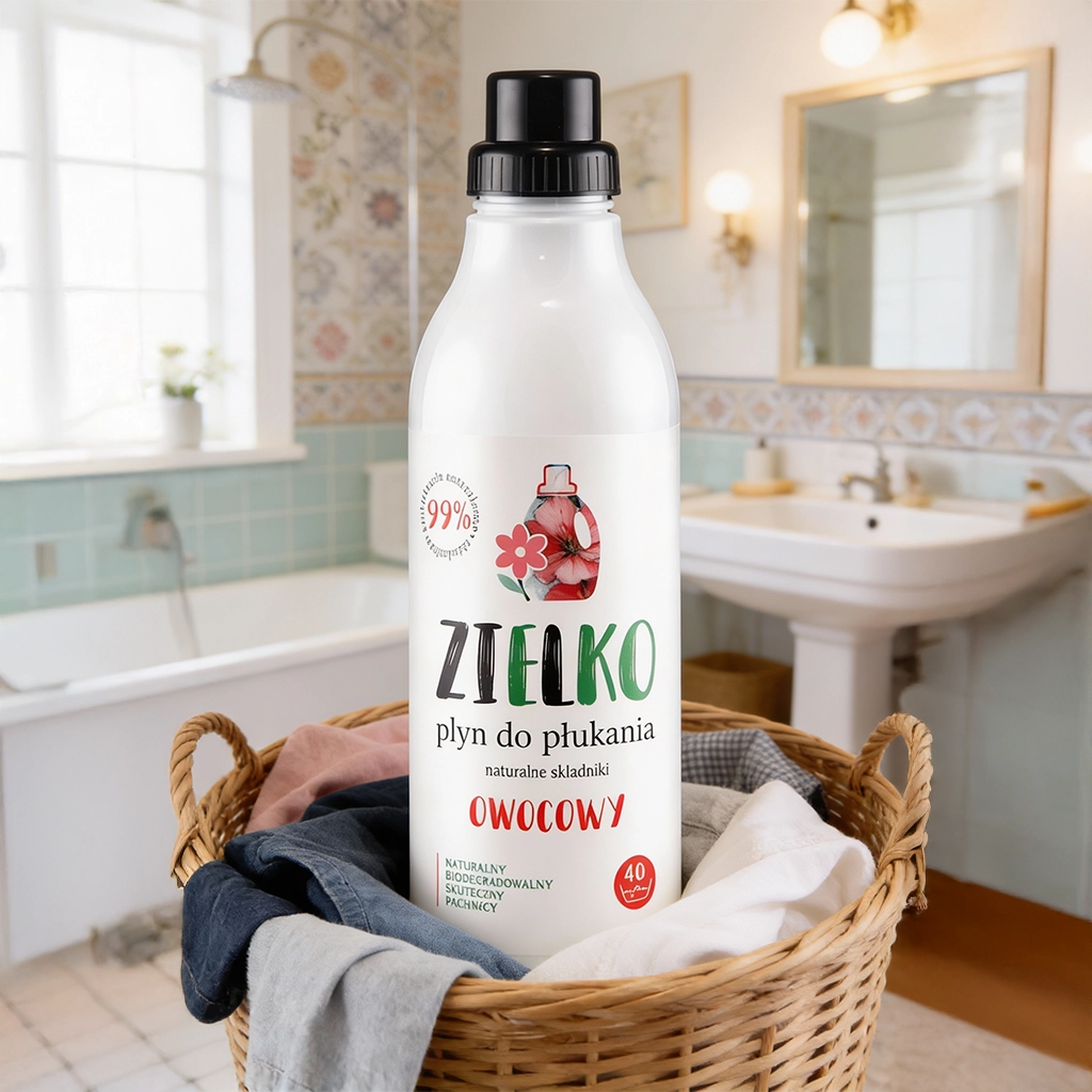 Naturalny płyn do płukania zmiękcza i odświeża pranie, nadając tkaninom delikatny owocowy zapach. Sprawia, że świeżość trwa dłużej, zapewniając płukanym materiałom piękny zapach utrzymujący się nawet przez kilka dni. Płyn do płukania ZIELKO jest całkowicie bezpieczny i przyjazny nie tylko dla ubrań, ale również dla skóry, nawet tej delikatnej i wrażliwej. Jak wszystkie produkty ZIELKO jest całkowicie biodegradowalny.