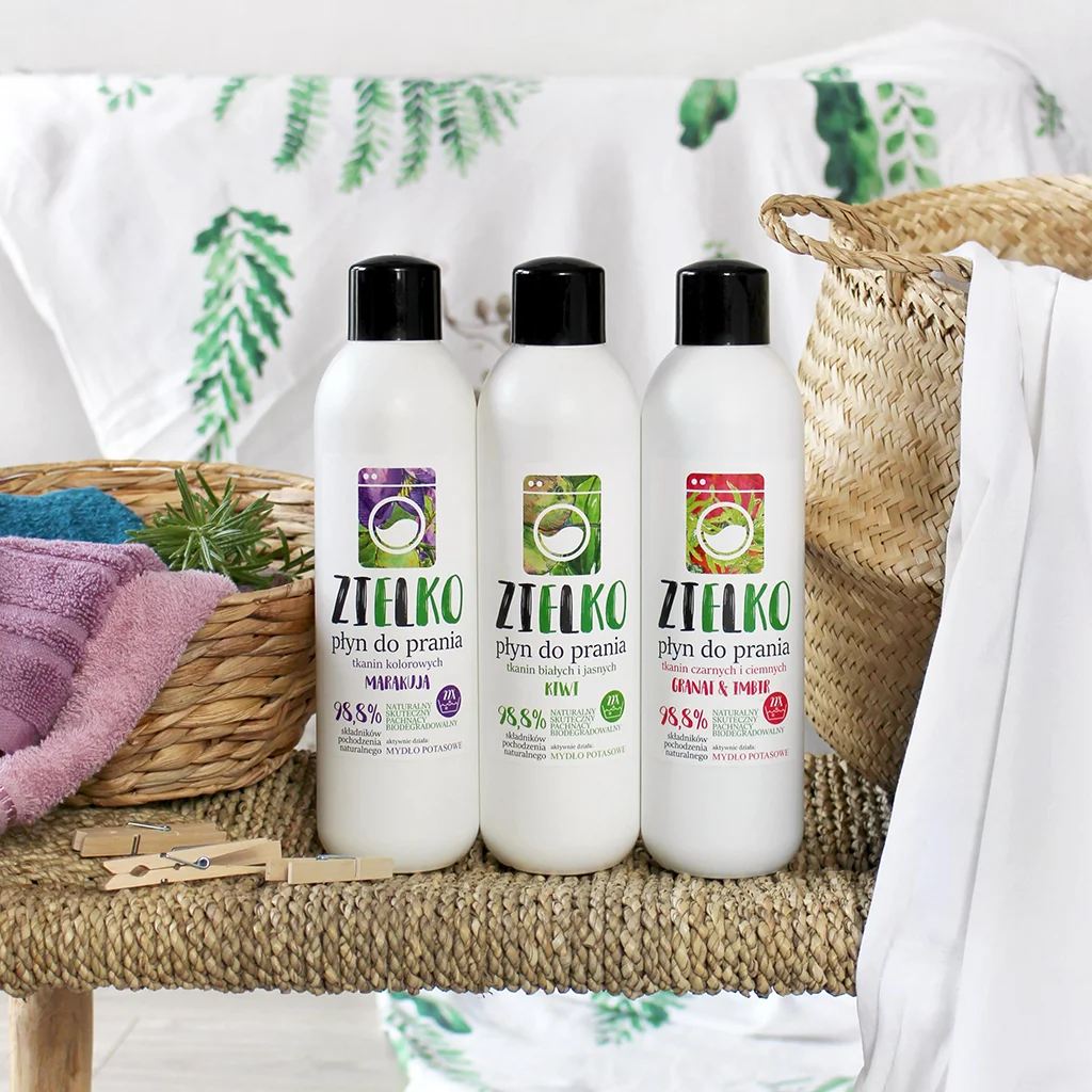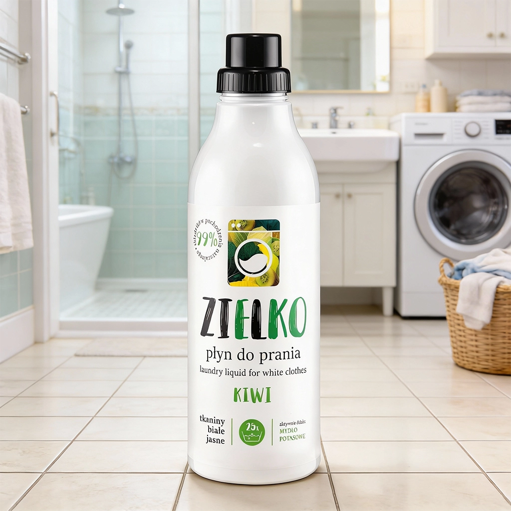 Naturalny płyn na bazie mydła potasowego dedykowany do prania średnio zabrudzonych tkanin białych i jasnych o delikatnym zapachu kiwi. Sprawdzona receptura oraz ekologiczny skład płynu pomagają usuwać plamy, nie niszcząc tkaniny. Został stworzony do stosowania zarówno podczas prania ręcznego oraz w pralce. Sprawia, że ubrania stają się czyste i przyjemne w dotyku. Skuteczne pranie w temperaturze 30°- 60°C.