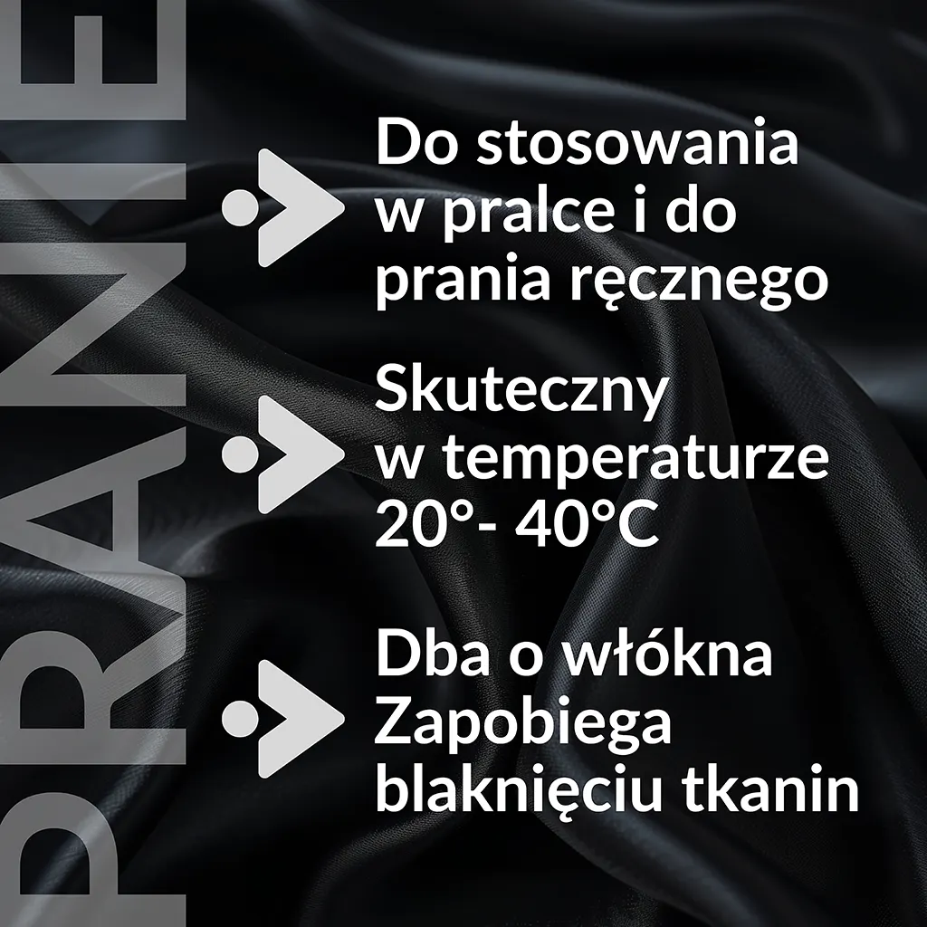 Płyn działa aktywnie już w niskich temperaturach (20-40°C), oszczędzając energię i chroniąc delikatne włókna.