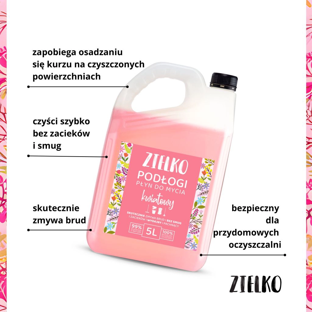 Jeśli lubisz, gdy podłoga po umyciu wygląda naprawdę czysto – bez zacieków i bez efektu „matowej mgiełki” – sięgnij po ZIELKO Płyn do mycia podłóg Kwiatowy 5L. To praktyczny wybór dla osób, które oczekują jednocześnie skutecznego domywania i komfortu użytkowania. Wariant kwiatowy wnosi do wnętrza subtelną świeżość, dzięki czemu sprzątanie zostawia po sobie nie tylko porządek, ale też miłe wrażenie „odświeżonego domu”.